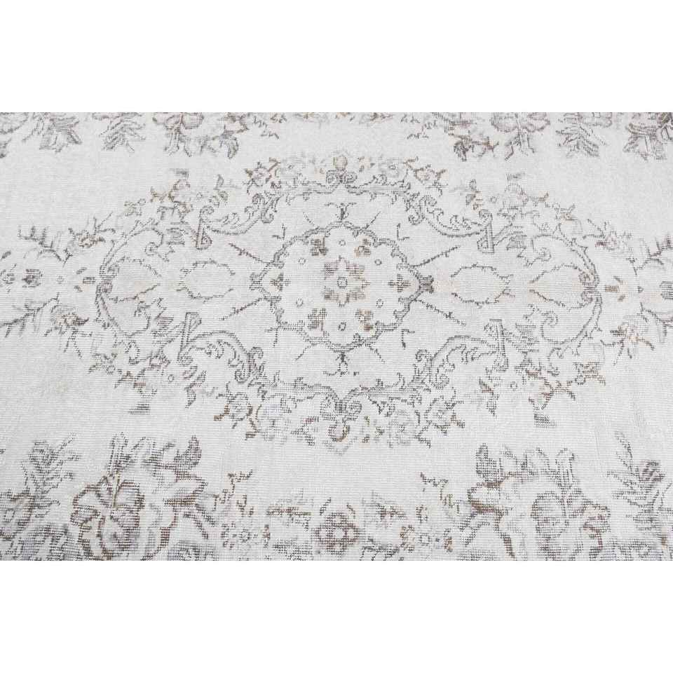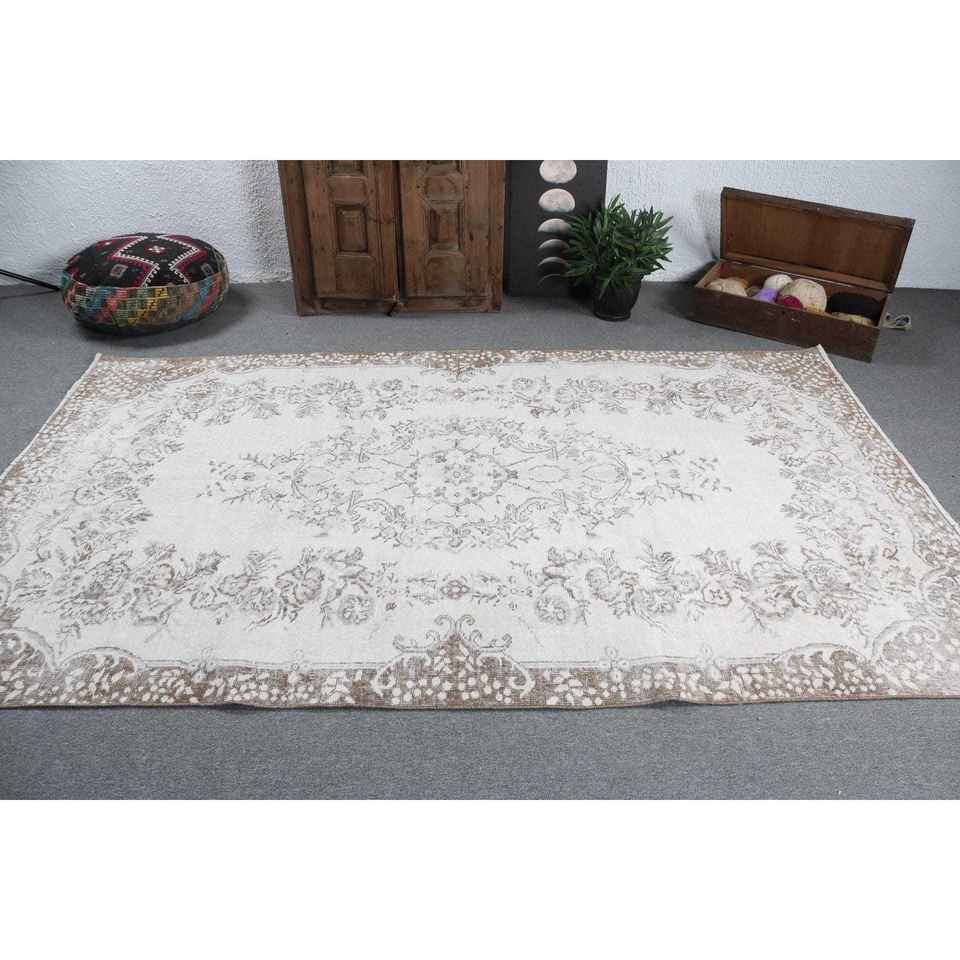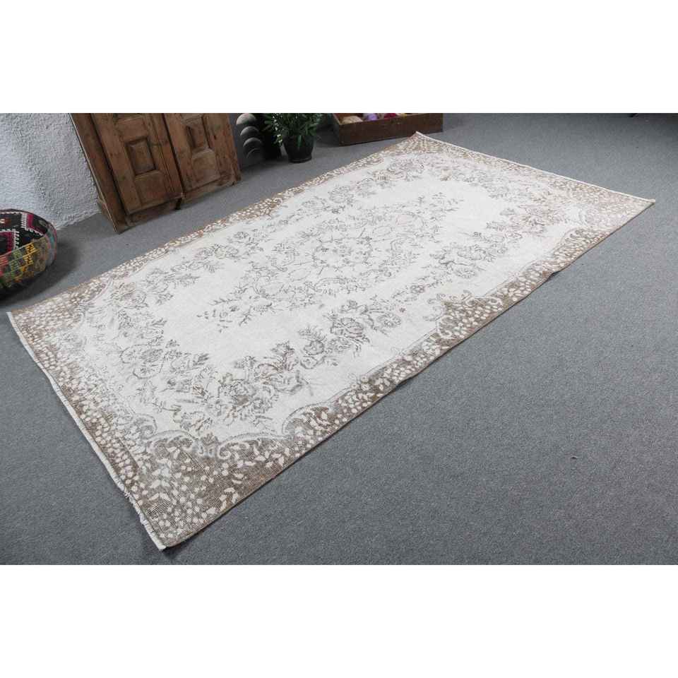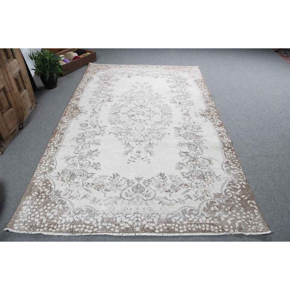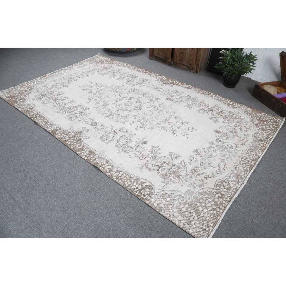 พรมวินเทจสไตล์ตุรกี ขนาด 5.5x9.2 ฟุต พรมขนาดใหญ่ สีขาวน้ำตาลไล่เฉด ทำจากขนสัตว์