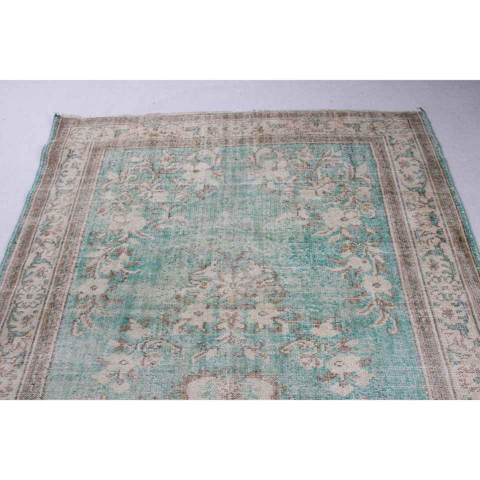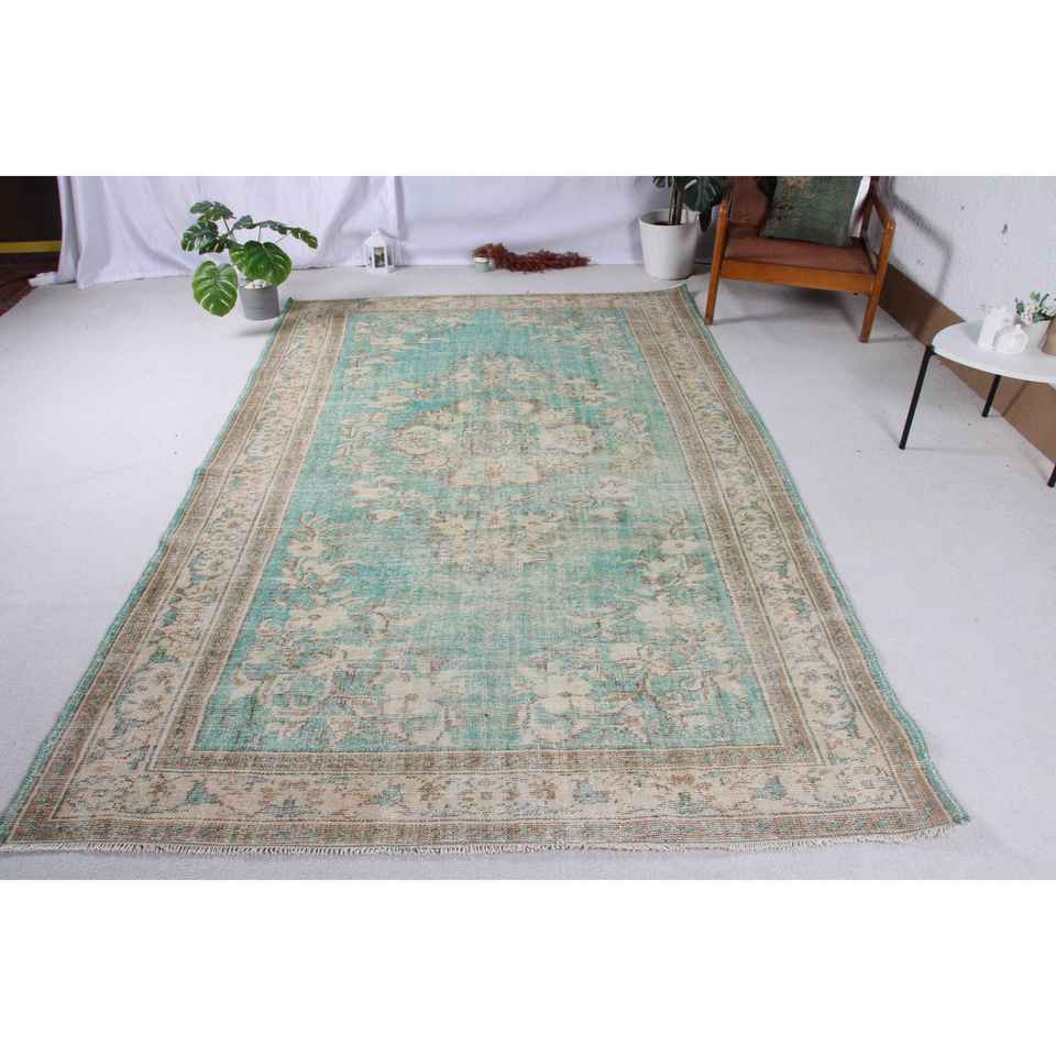 พรมวินเทจสไตล์ตุรกี ขนาด 5.8x9.3 ฟุต พรมขนาดใหญ่ ลายดอกไม้สีน้ำเงินน้ำตาล