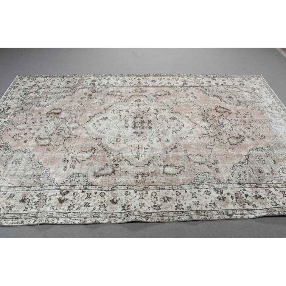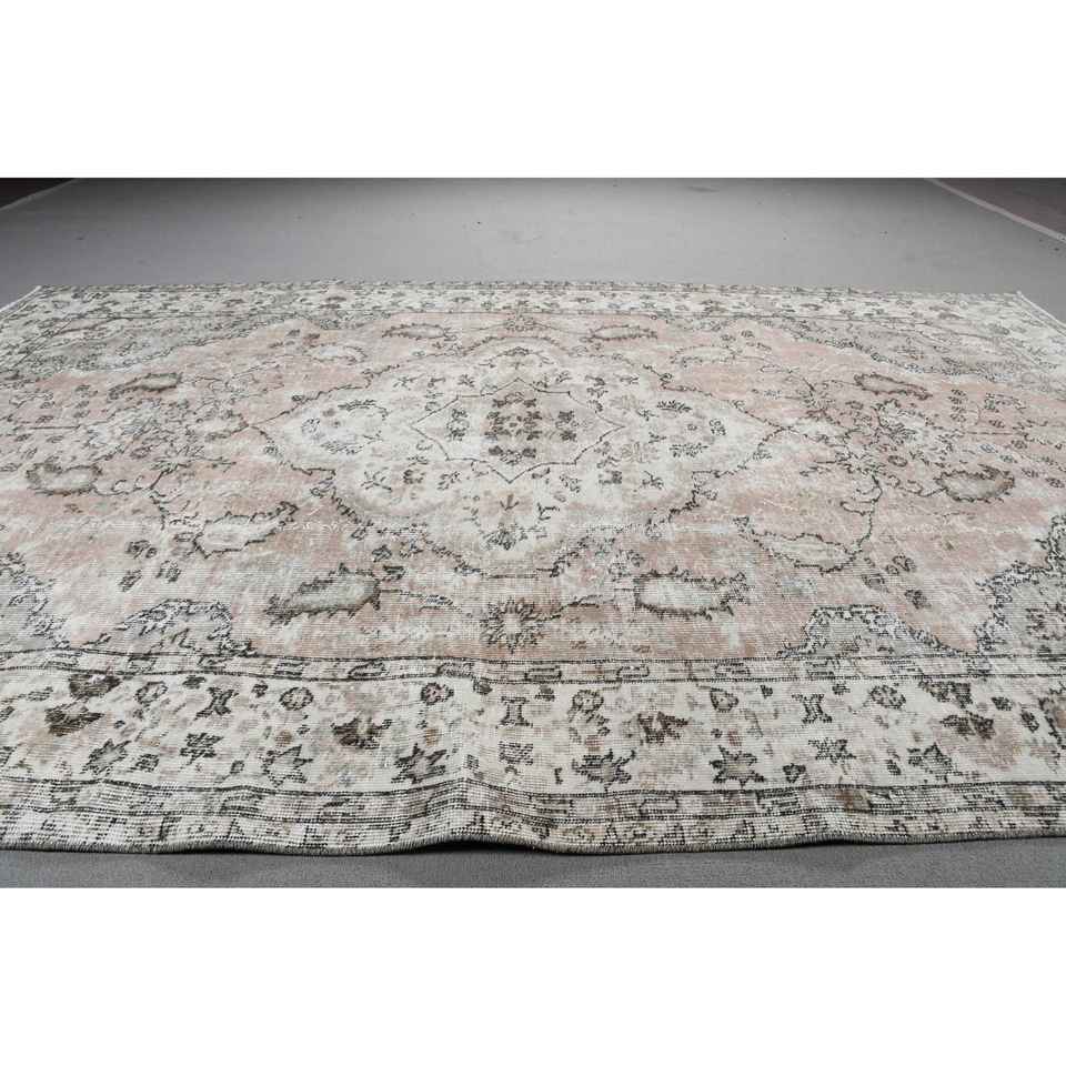 พรมวินเทจสไตล์ตุรกี ขนาด 5.9x9.1 ฟุต พรมสีเทาขนาดใหญ่สไตล์เปอร์เซีย