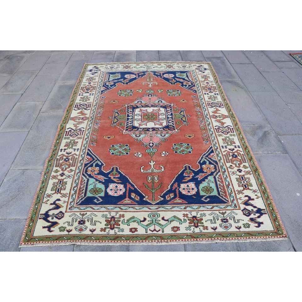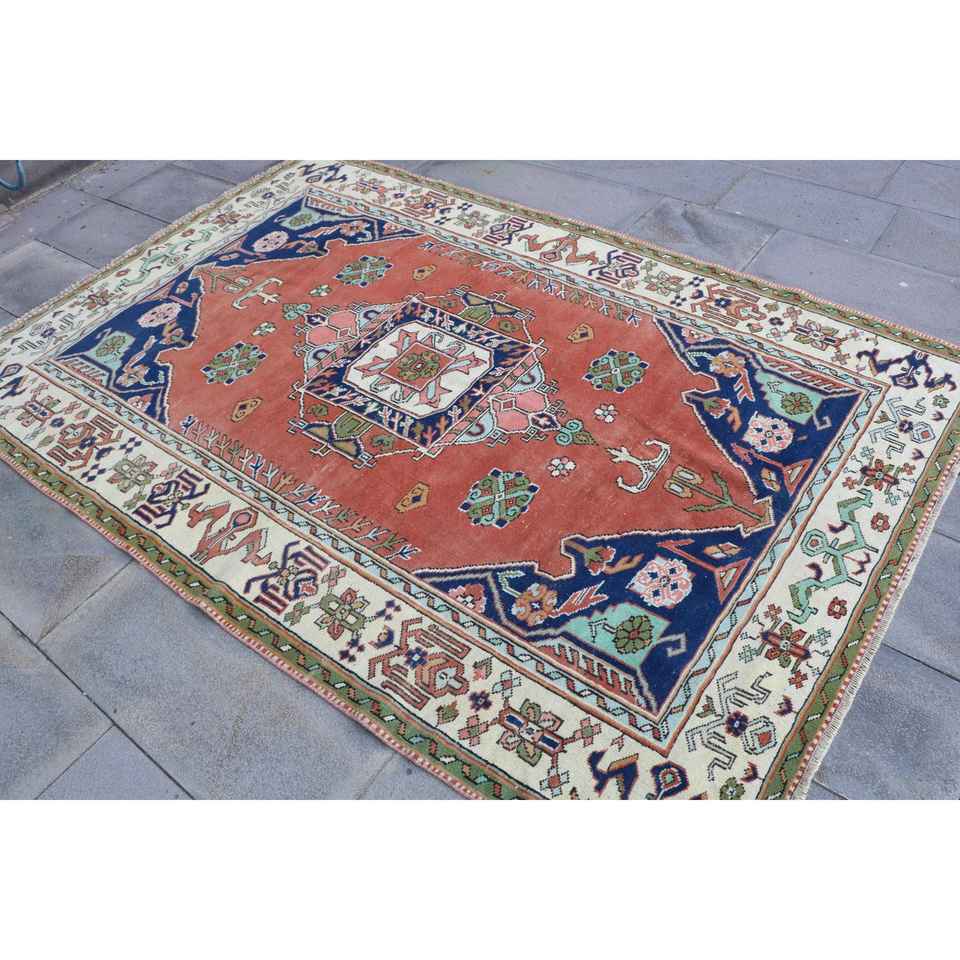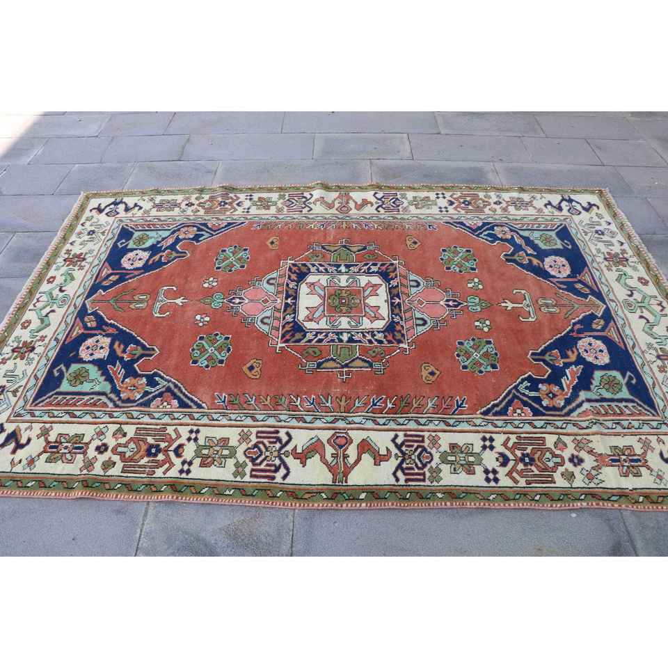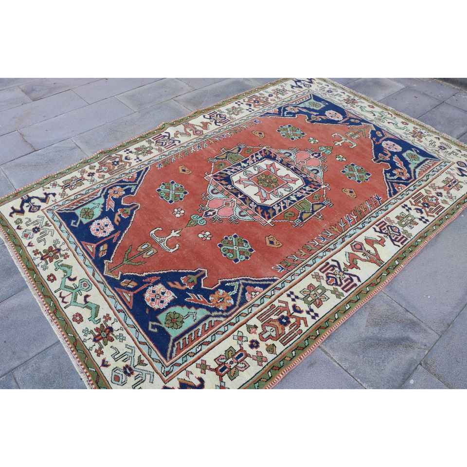 พรมวินเทจตุรกี ขนาด 5x7.8 ฟุต (153x239 ซม.) สีแดงน้ำเงิน ลายต้นไม้และพืช