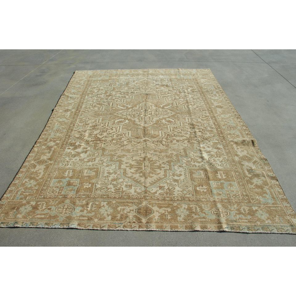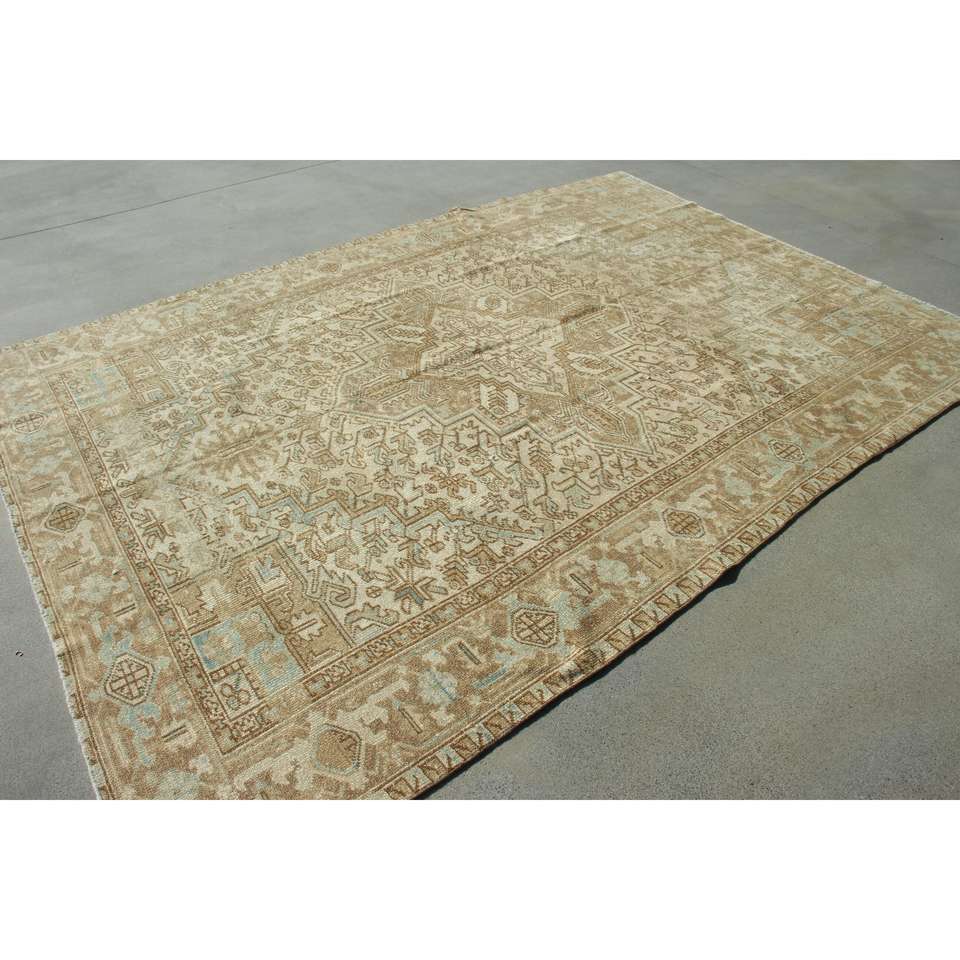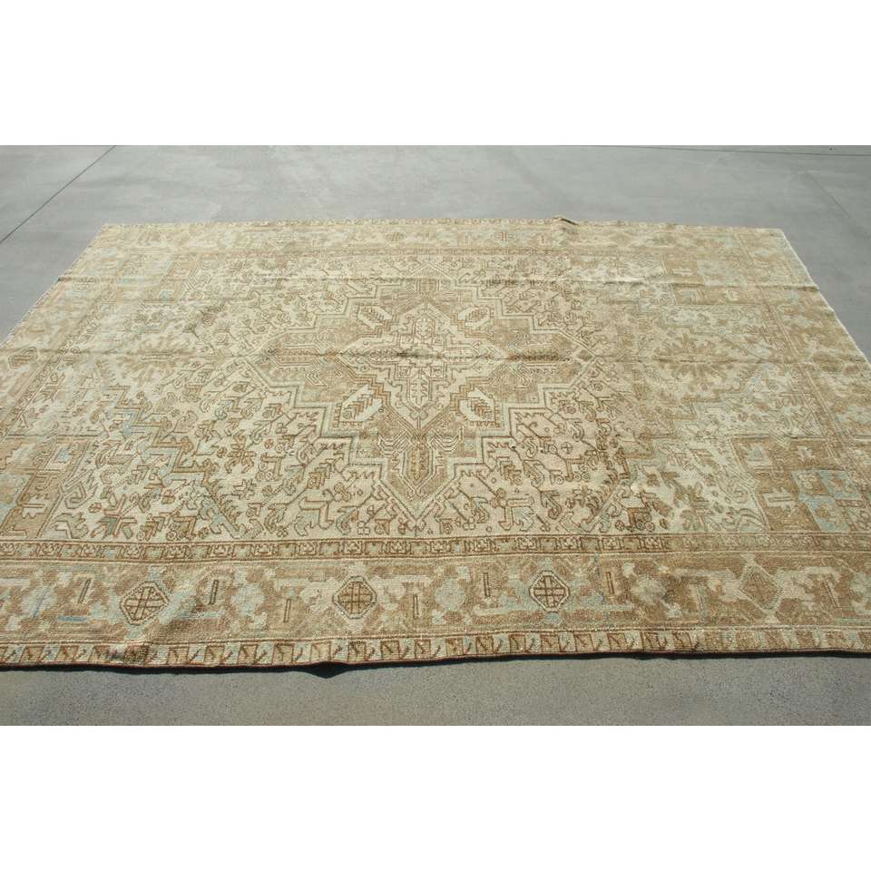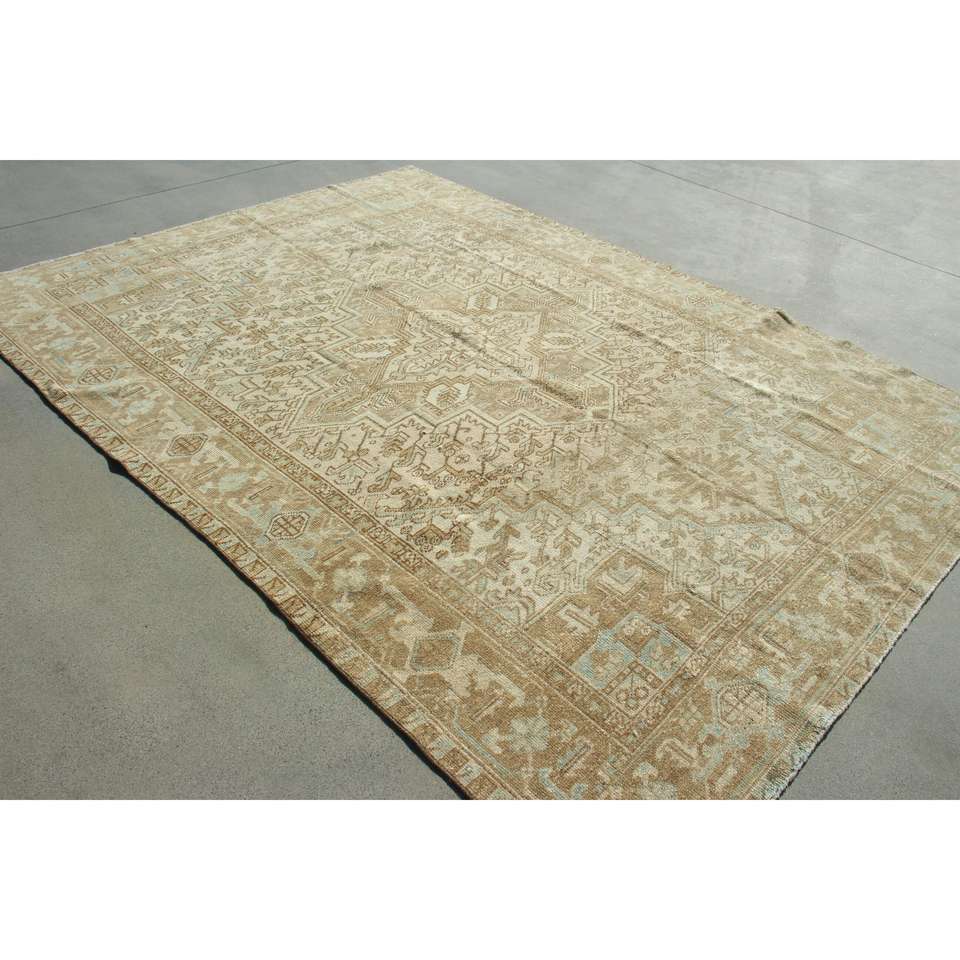 พรมวินเทจตุรกี ขนาด 6.9x9.6 ฟุต สีน้ำตาล พรมขนสัตว์อิคัตขนาดใหญ่