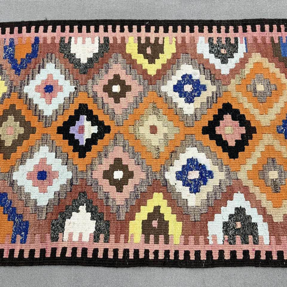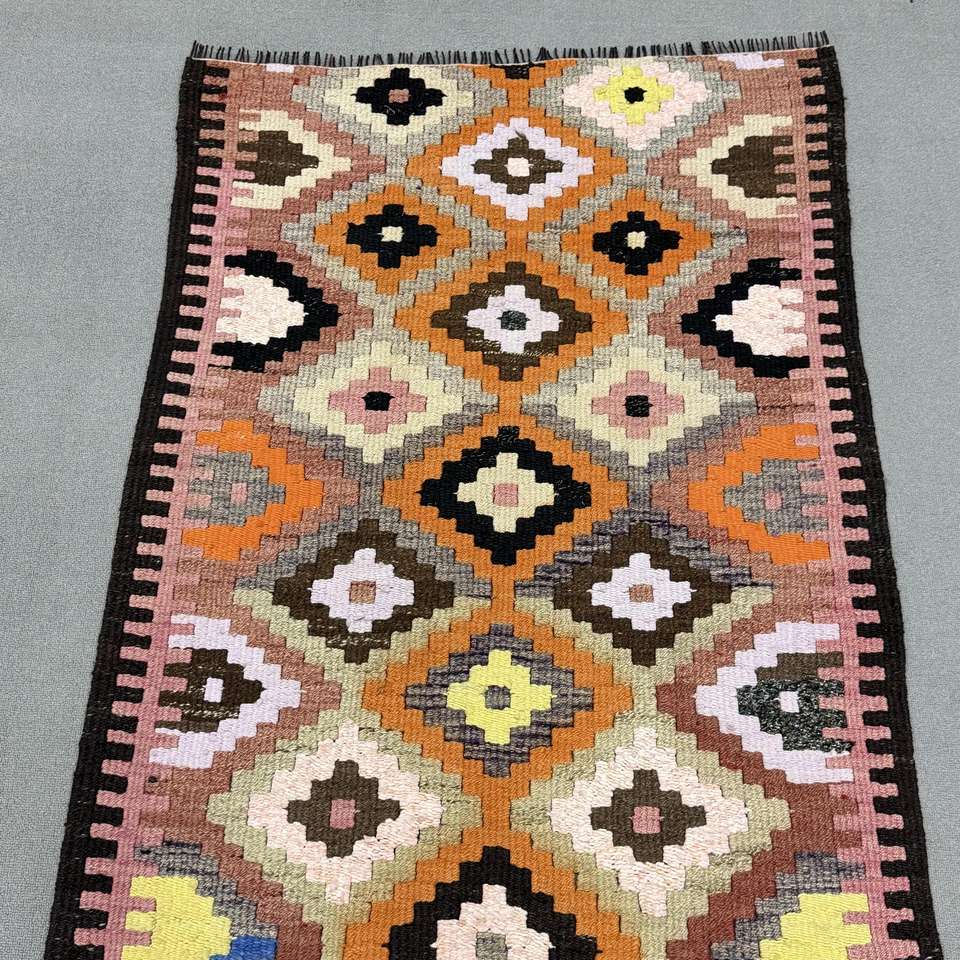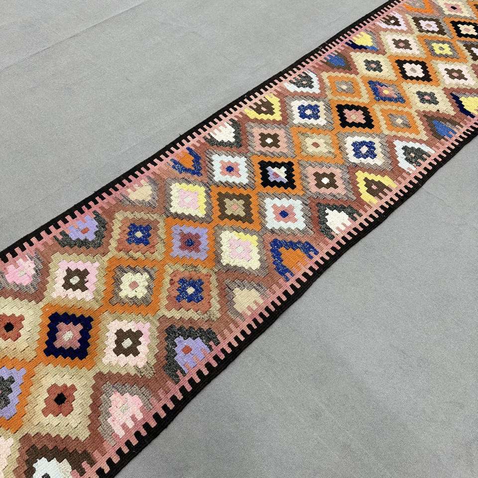 พรมวินเทจสไตล์ตุรกี, พรมแบบยาว 2.9x12.1 ฟุต (88x368 ซม.), พรมขนสัตว์สีส้มลายปะติด