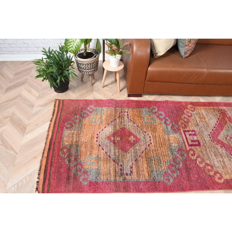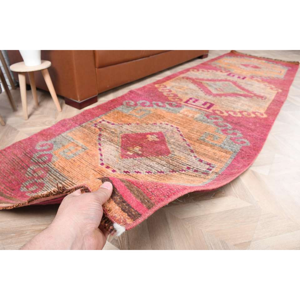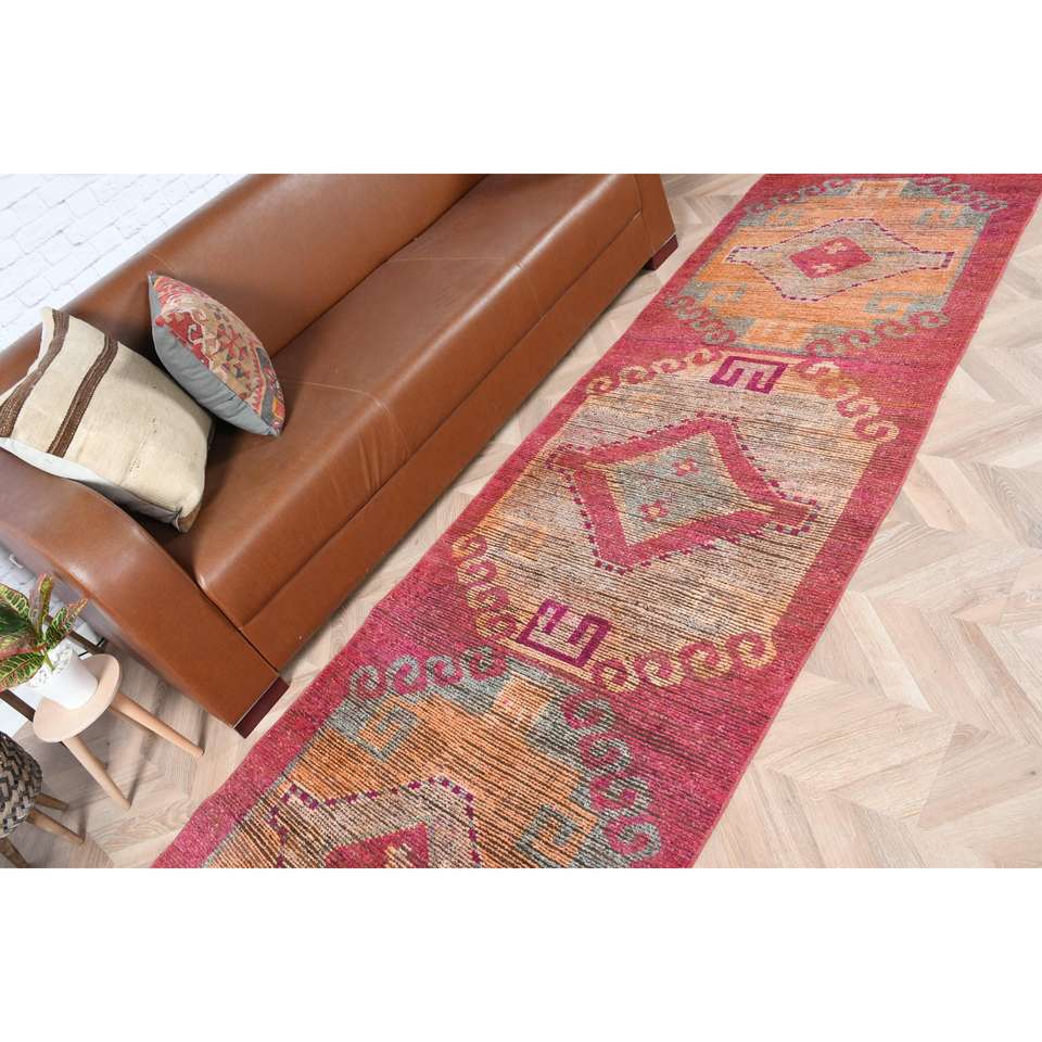 พรมวินเทจสไตล์ตุรกี, พรมปูพื้นขนาด 3.1x10.7 ฟุต (93x325 ซม.), พรมขนสัตว์ลายดอกไม้สีแดง