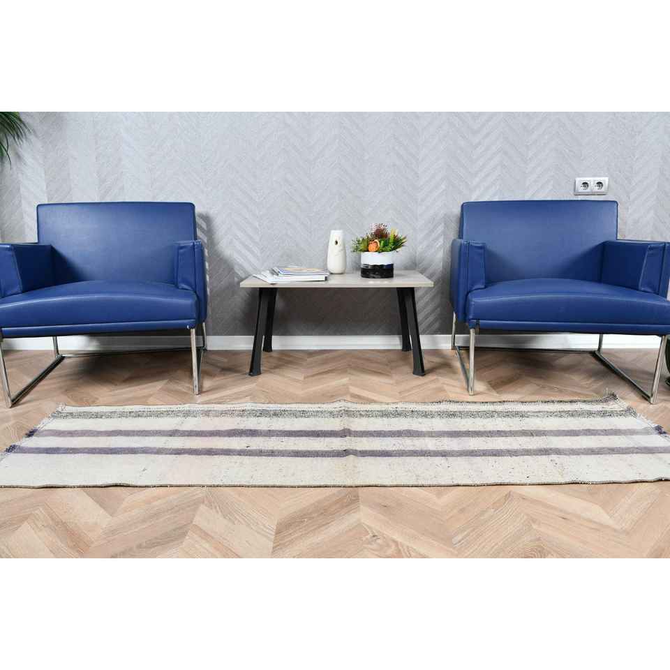 พรมวินเทจสไตล์ตุรกี ขนาด 1.9x6.5 ฟุต (59x198 ซม.) พรมคิลิมสีขาวล้วน