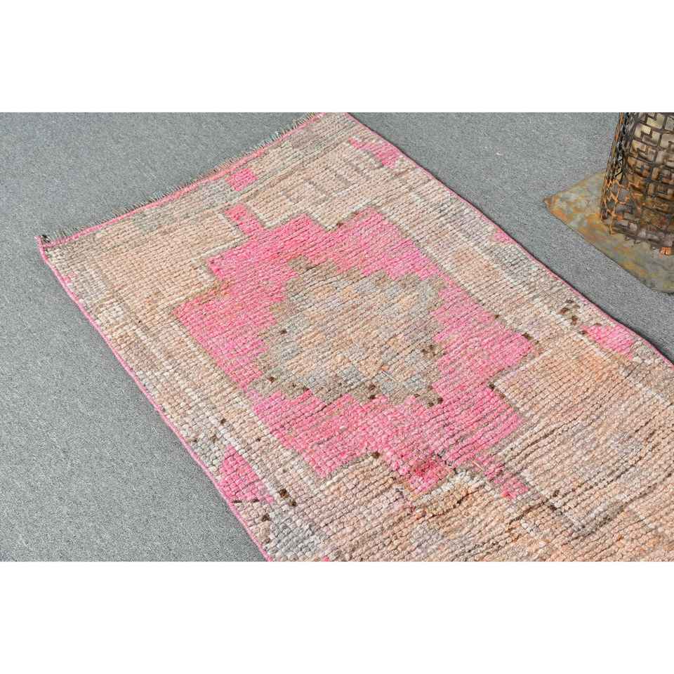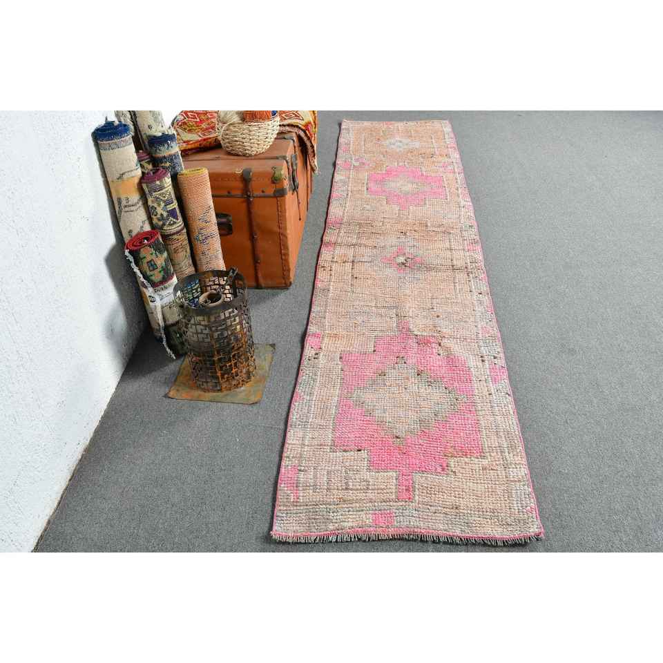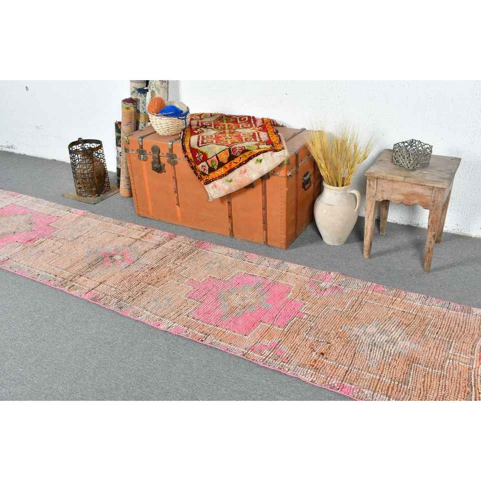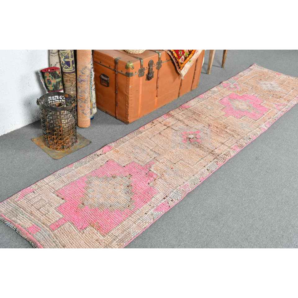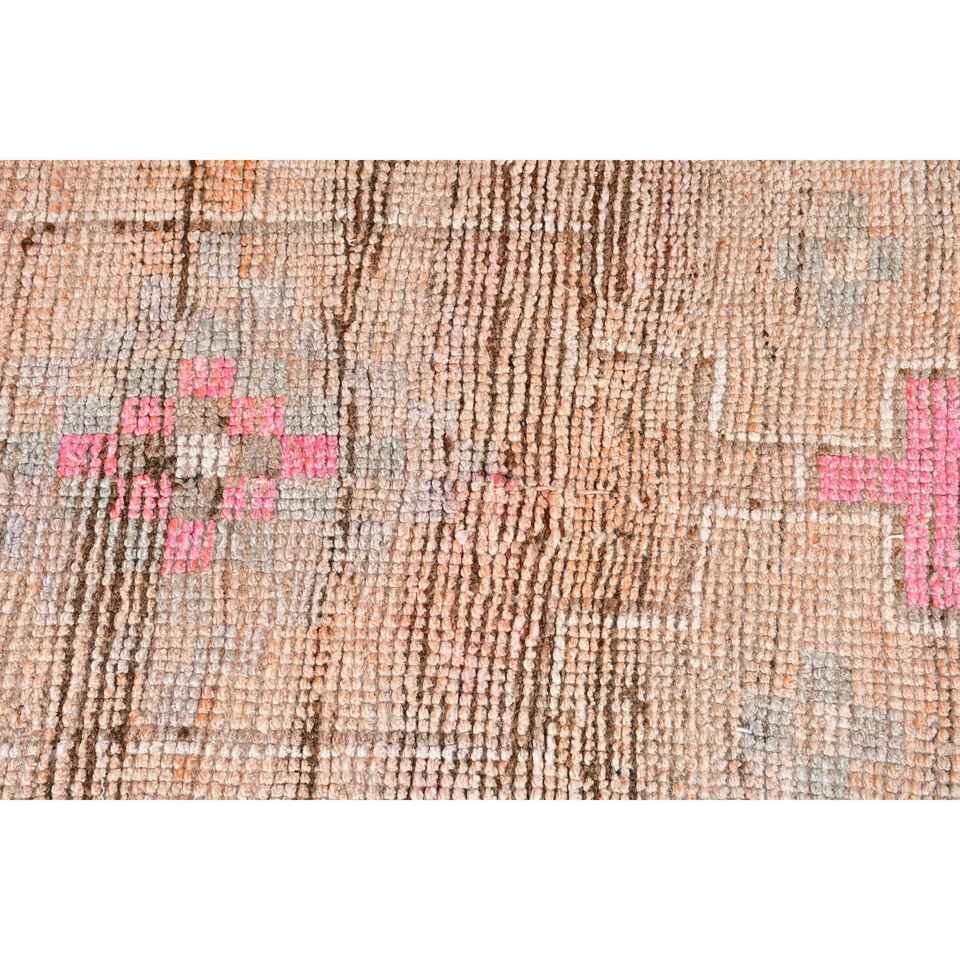 พรมวินเทจสไตล์ตุรกี ขนาด 2.2x10.1 ฟุต สีชมพู-น้ำตาล ลายดอกไม้
