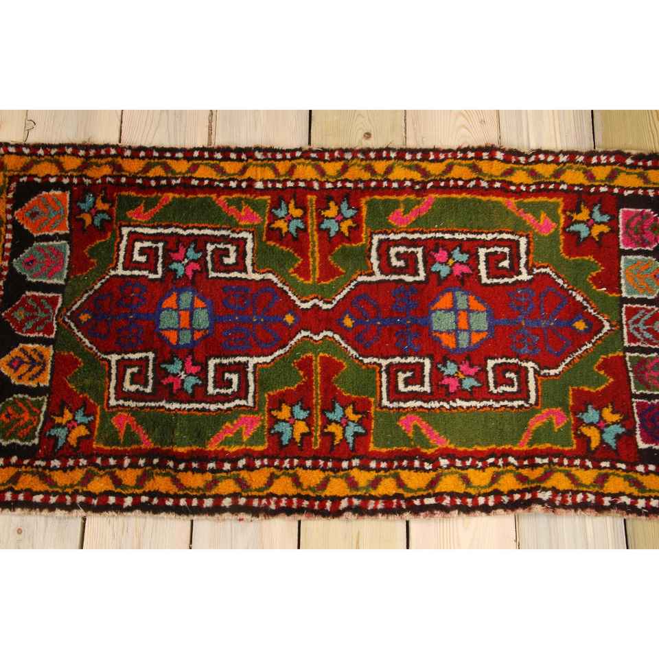 พรมวินเทจตุรกีขนาดเล็ก 1.7x3.7 ฟุต พรมขนสัตว์สีแดง