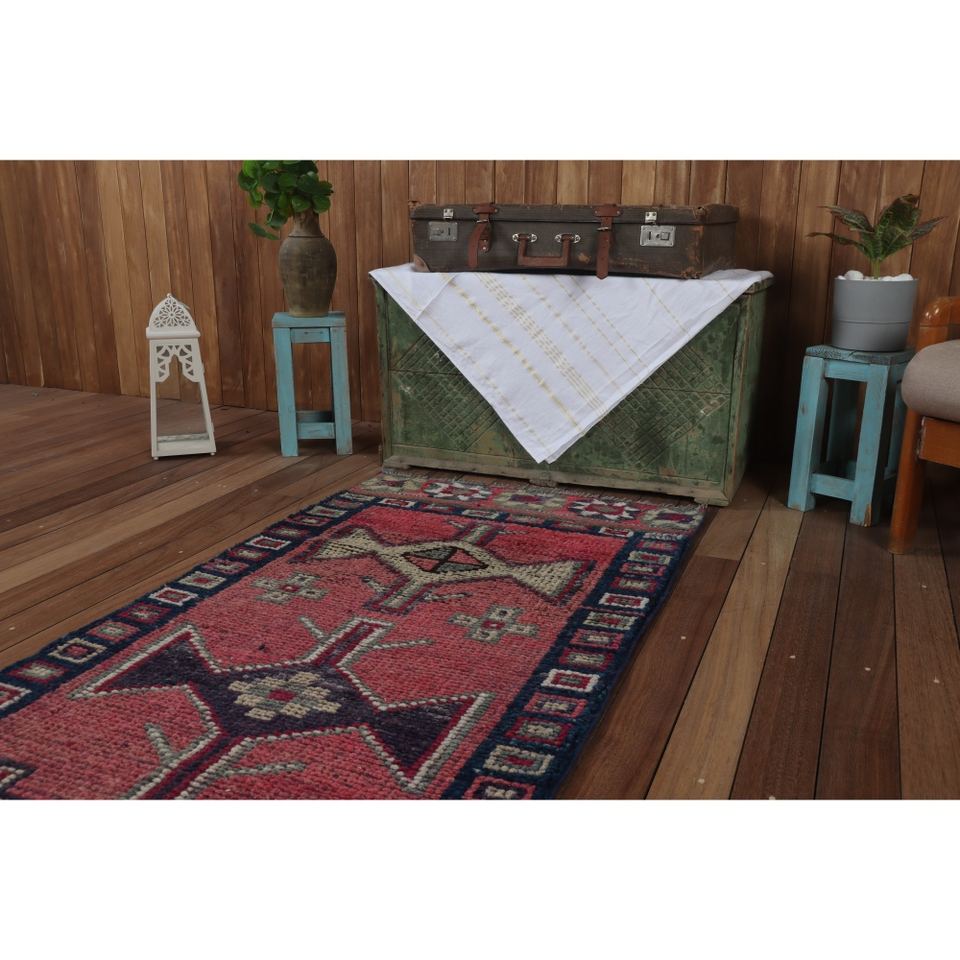 พรมวินเทจตุรกีขนาดเล็ก 2.7x9.5 ฟุต, พรมสีชมพูเฮอร์กี