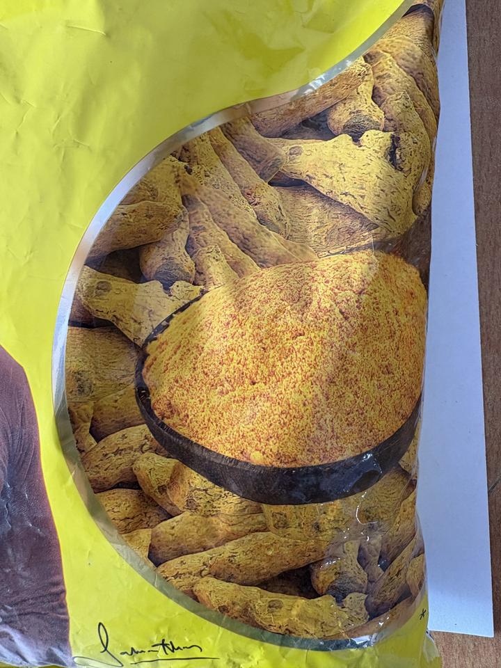 ผงขมิ้นทำจากรากขมิ้นมือที่มีกลิ่นหอมสดและรสชาติแบบอินเดียใต้แท้