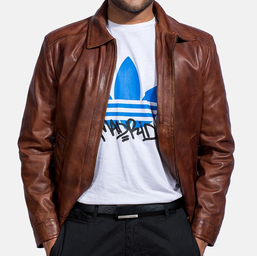 แจ็กเก็ตหนังแกะสำหรับผู้ชายเสื้อแจ็คเก็ตหนังสีน้ำตาลแวกซ์/เสื้อแจ็คเก็ตหนังสีน้ำตาลวินเทจสำหรับ2026