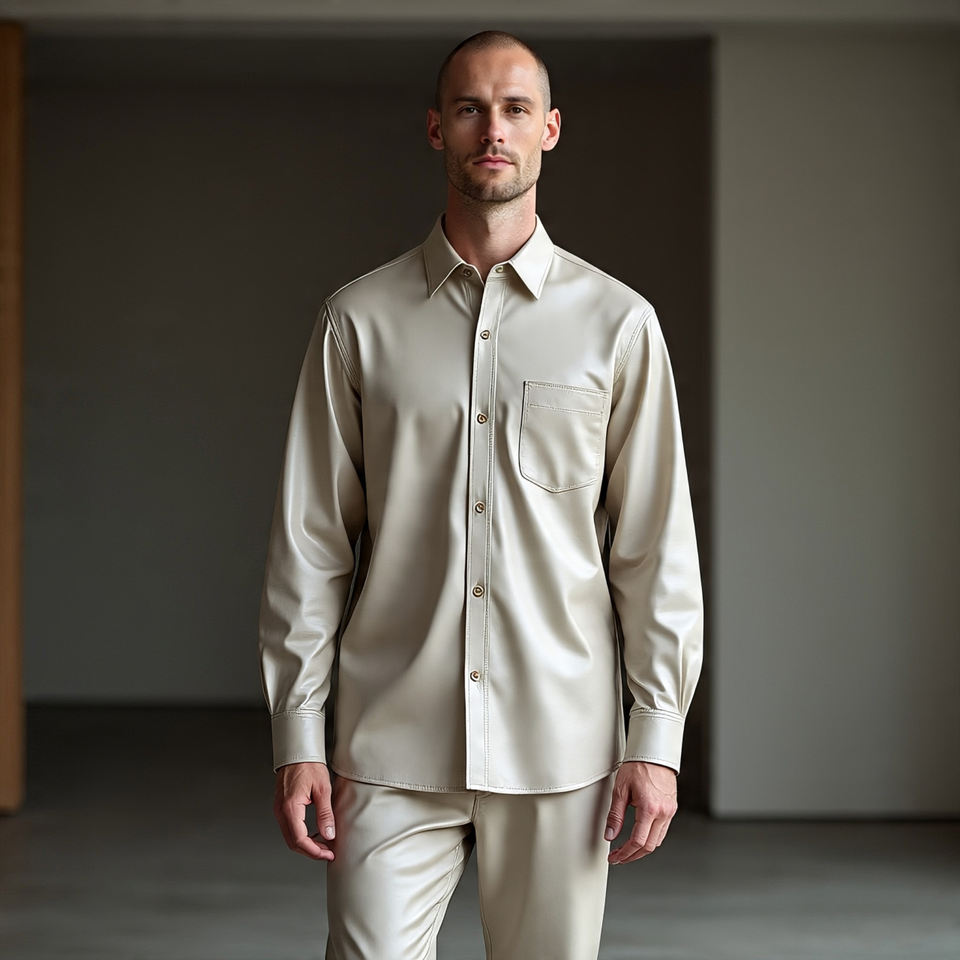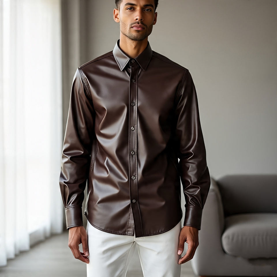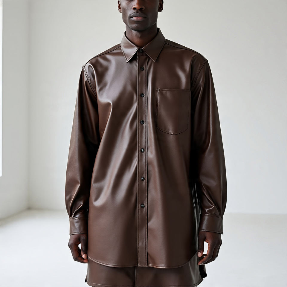 เสื้อเชิ้ตกระเป๋าคู่หนังแท้ผู้ชาย