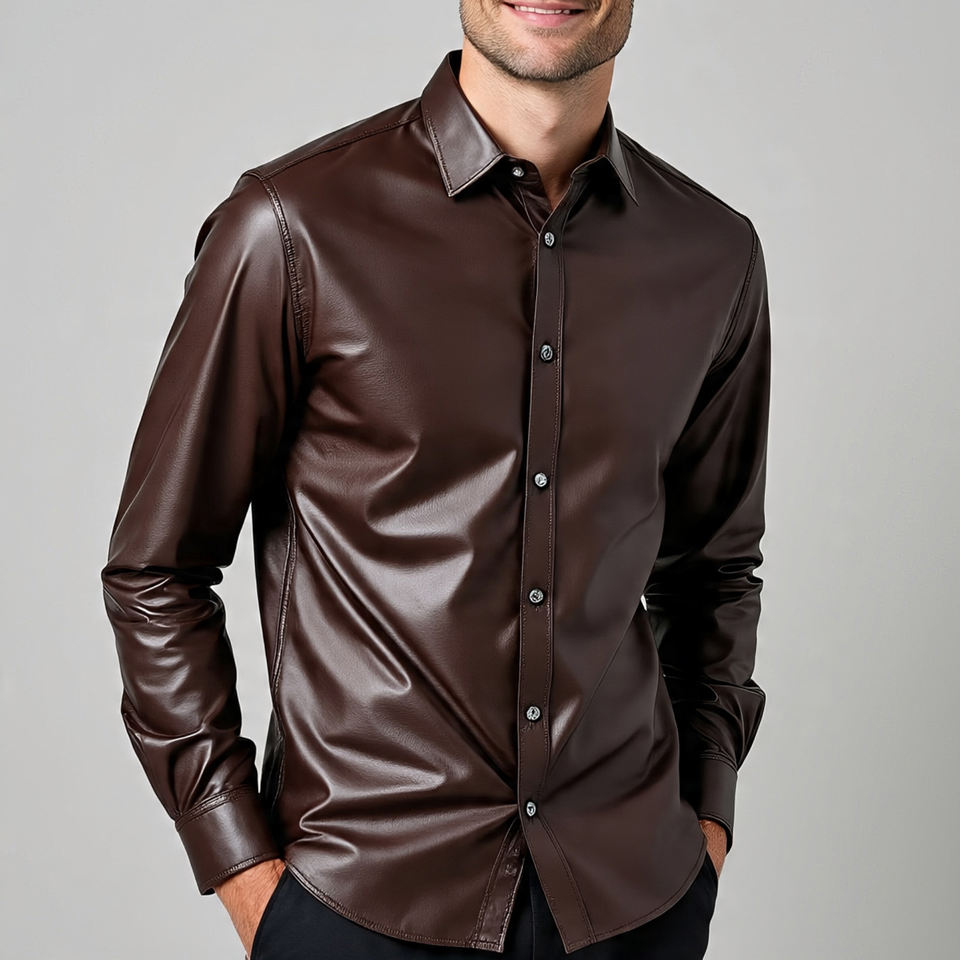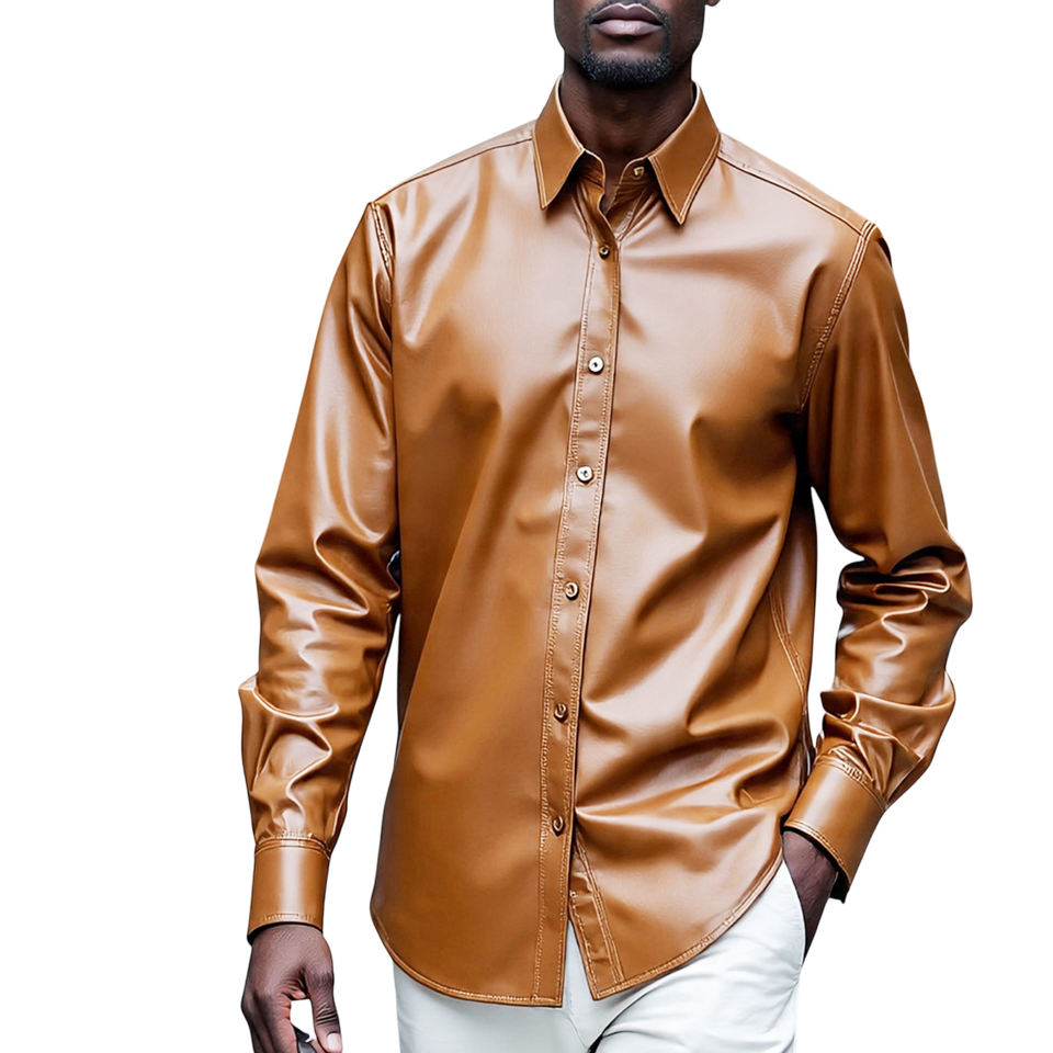 เสื้อเชิ๊ตหนังผู้ชายคอปกแบบเปิดลงระบายอากาศได้ดีมีกระเป๋าคู่และหนังวัว