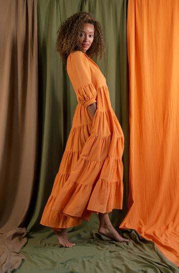 ชุดแม็กซี่เดรสผู้หญิงยาวปกพับลงหลายชั้น,ชุดเดรสสีพื้นแฟชั่นสุดหรูสำหรับผู้หญิง
