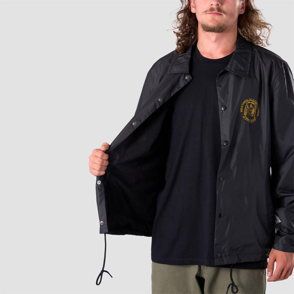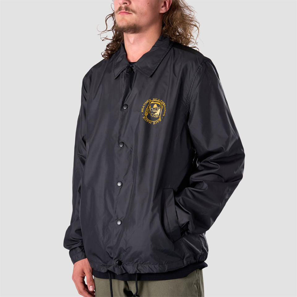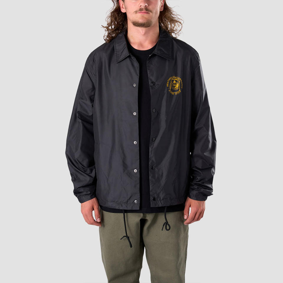 เสื้อแจ็คเก็ตโค้ชไลน์สีดำวินเทจสำหรับผู้ชาย พิมพ์ลายโลโก้ เหมาะสำหรับใส่กลางแจ้งและในชีวิตประจำวัน