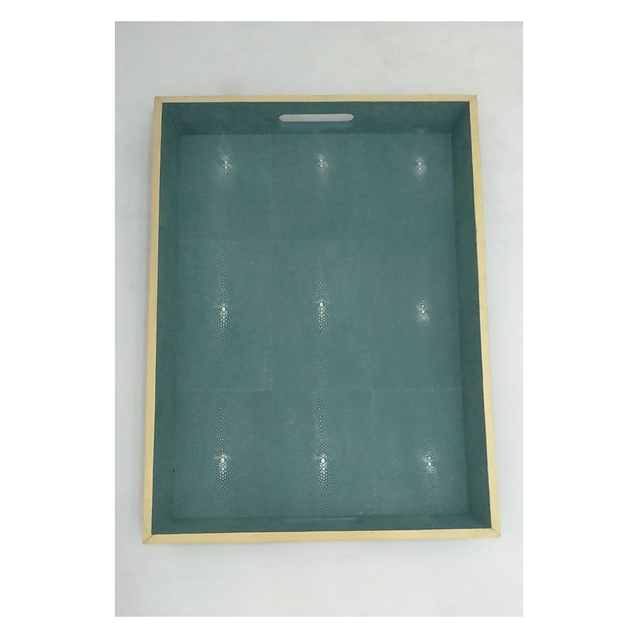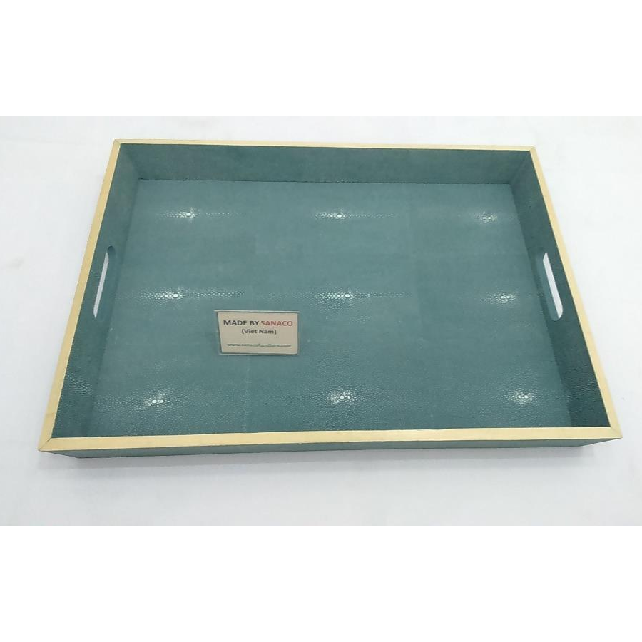 ถาดชา MDF รุ่น DAPHOCO 013 สีเทอร์ควอยซ์ ขอบวีเนียร์ลายหนังชักกรีนเทียม ผลิตจากเวียดนาม ขนาด 0.53x0.37x0.06 เมตร