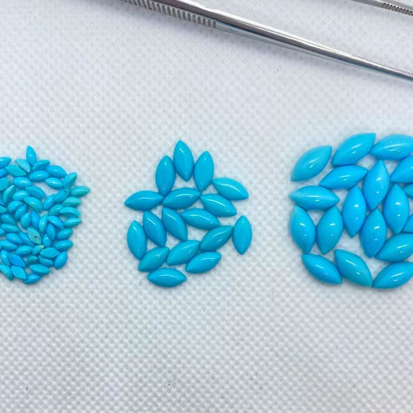 พลอยเทอร์ควอยซ์อะริโซนาทรงมาร์คีสขนาด 4x2 มม. แบบคาโบชอง พลอยธรรมชาติสำหรับทำเครื่องประดับ