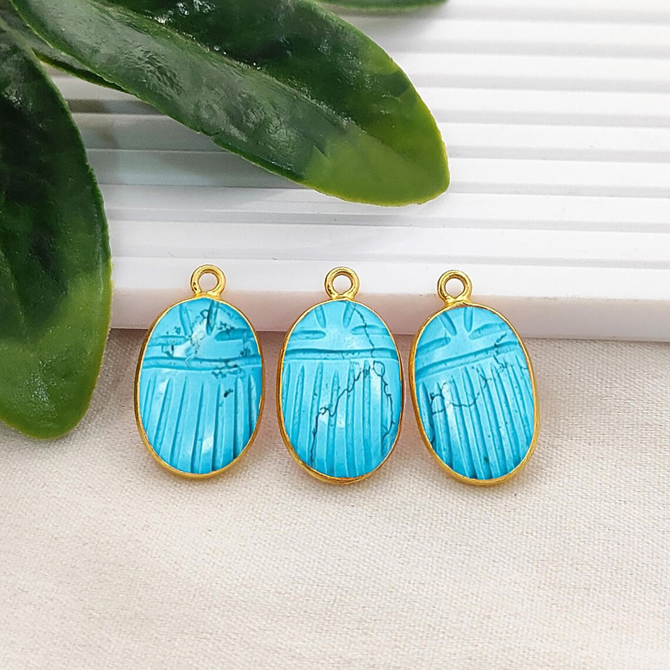 Turquoise Beetle Carving Pendant Handmade Gold Plated Carving Pendant Blue Turquoise Ladybug Carved Charms Jewelry Suppliers