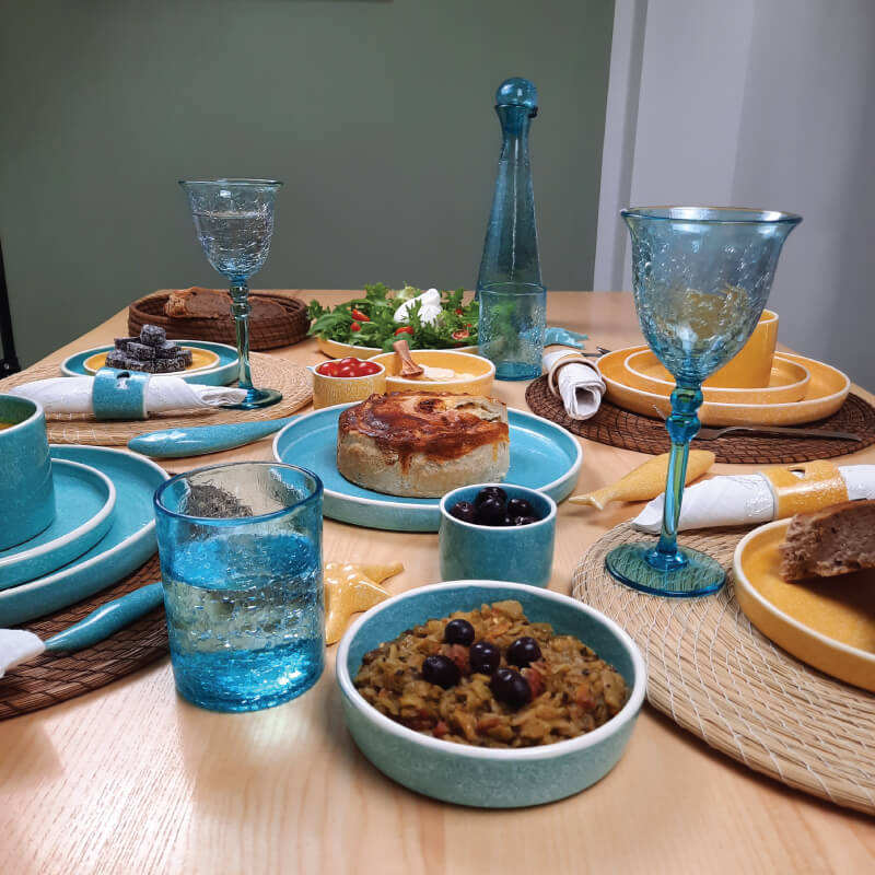 ชุดแก้วเทอร์ควอยซ์ คอลเลคชั่นแก้วเป่าลายแตก 6 ใบ (เส้นผ่านศูนย์กลาง 9 ซม. สูง 20 ซม.)