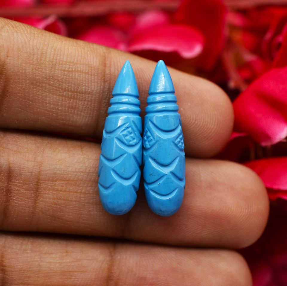 เทอร์ควอยซ์แกะสลักขนาด28X8คู่อัญมณีสังเคราะห์หลวมกุหลาบคริสตัลเครื่องประดับที่สร้างขึ้นในห้องปฏิบัติการประเภทพลอยธรรมชาติ