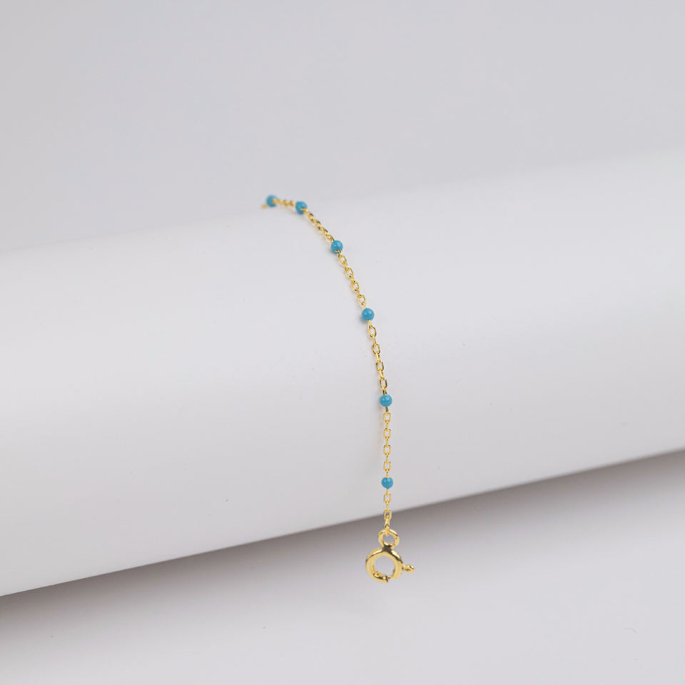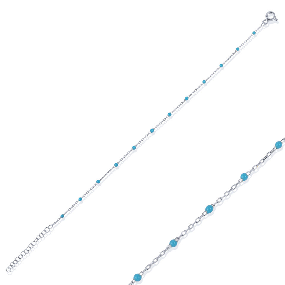 Turquoise Color Enamel Design Rhodium & Gold Plated Chain Bracelet Turkish Handmade 925 Sterling Silver Jewelry