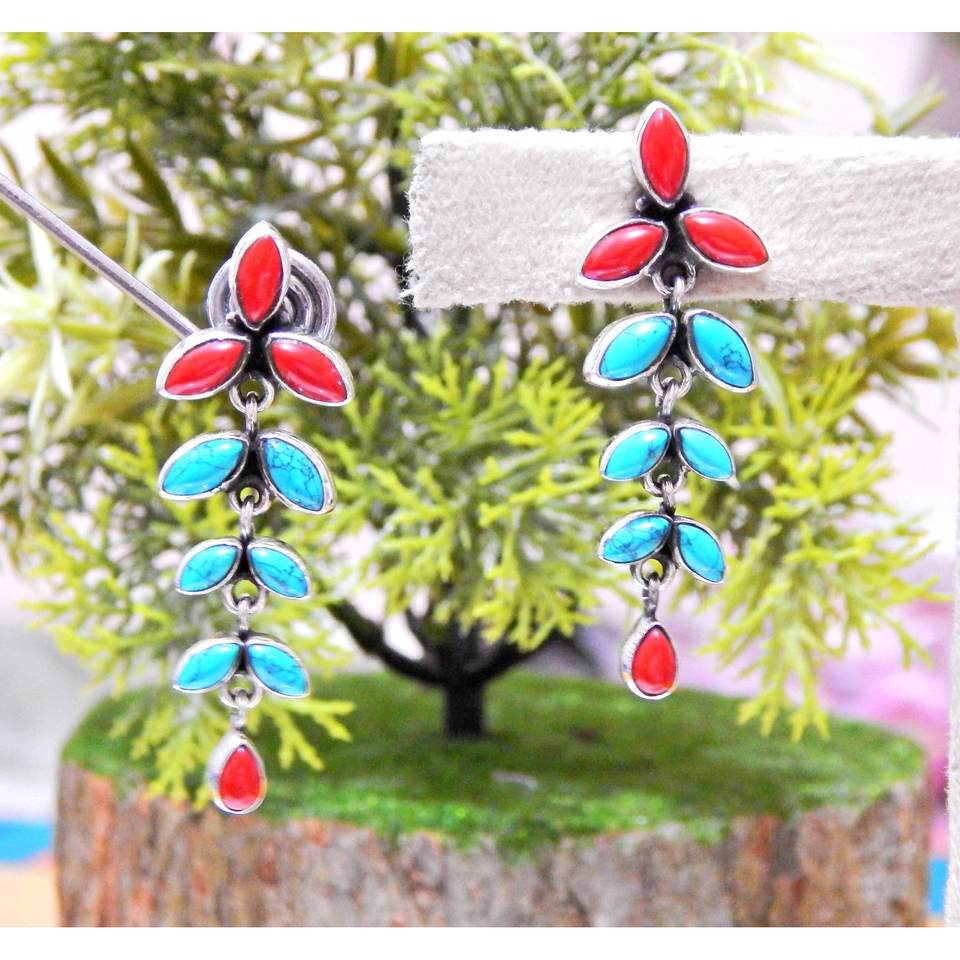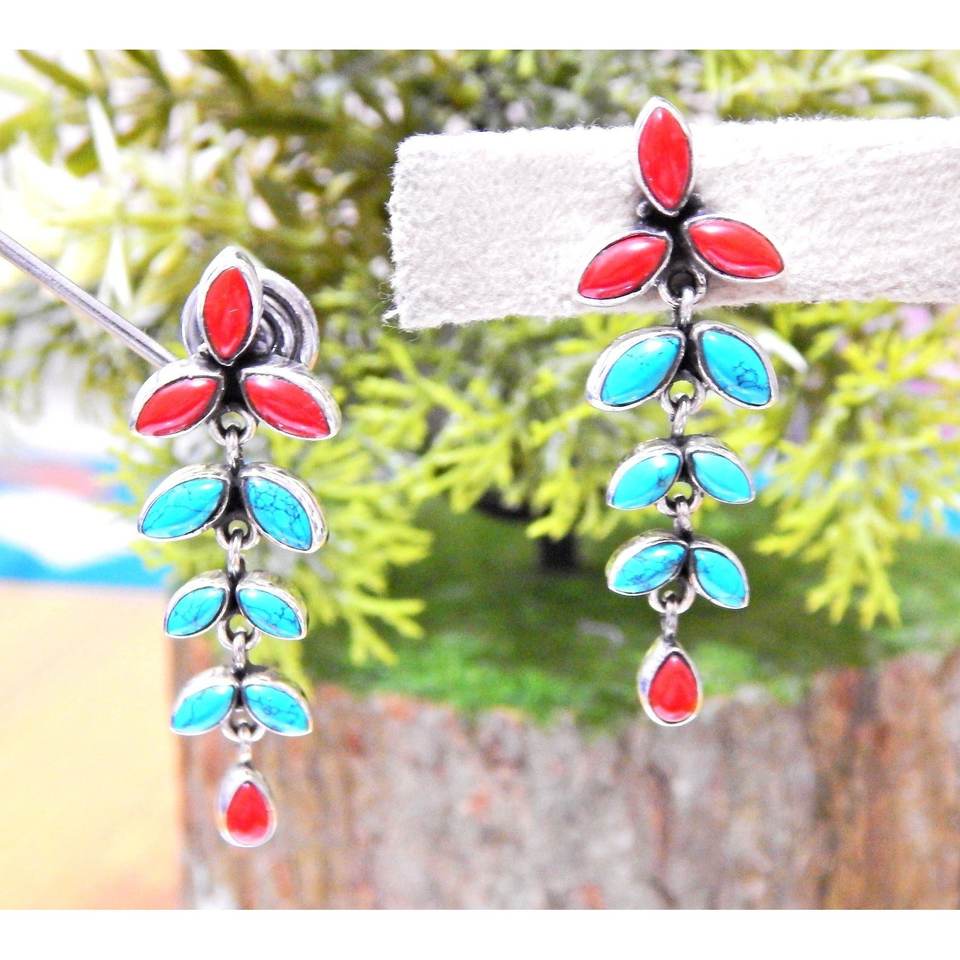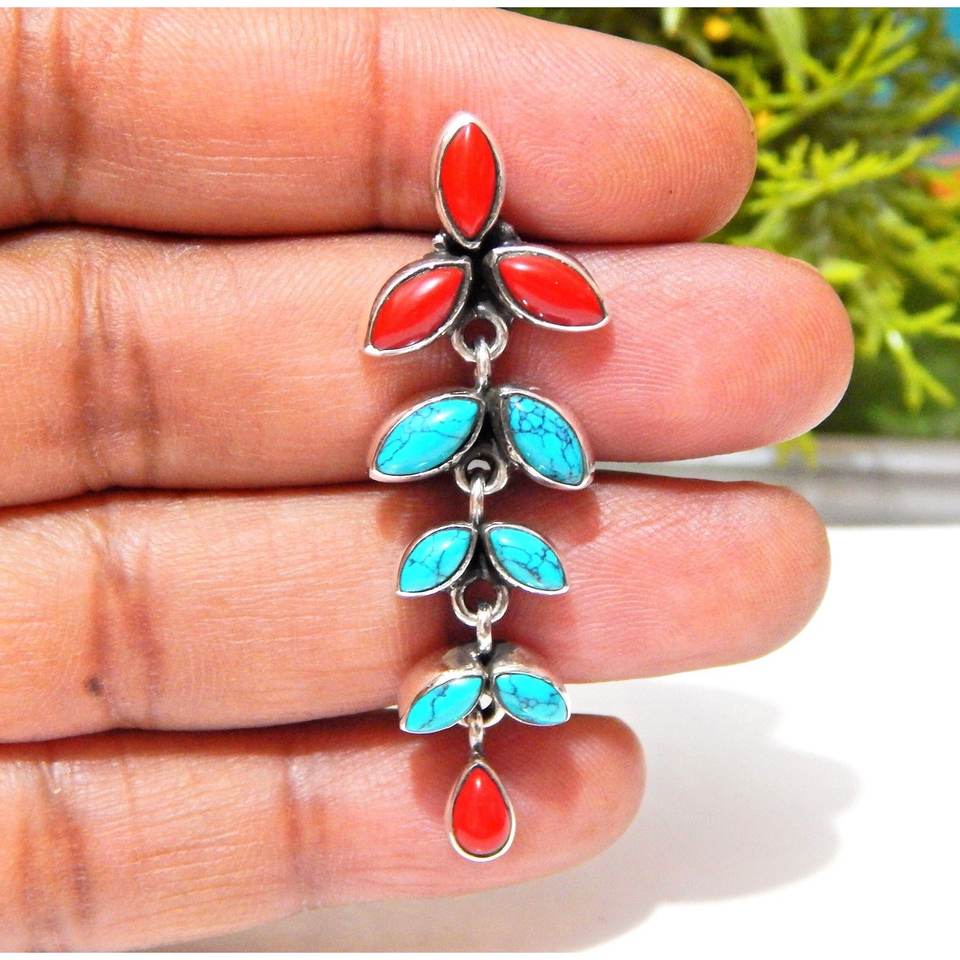 ต่างหูเงินสเตอร์ลิงรูปปะการังเทอร์ควอยส์925ทำด้วยมือ925สเตอร์ลิงกระดุมเพชรของขวัญสำหรับ Her-E0935-GS
