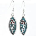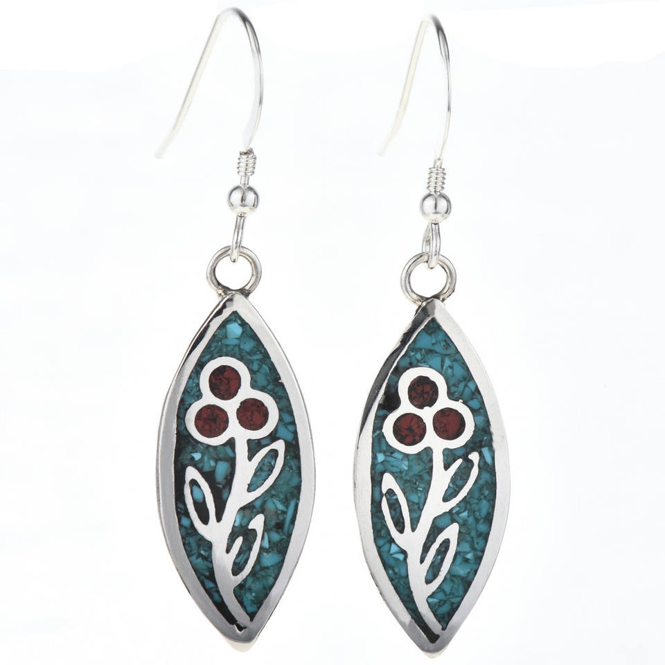ต่างหูเงินสเตอร์ลิงแบบฝังประดับด้วยปะการังสีเทอร์ควอยซ์ ดีไซน์ดอกไม้ ของขวัญวันครบรอบสุดโรแมนติก รุ่น 0046