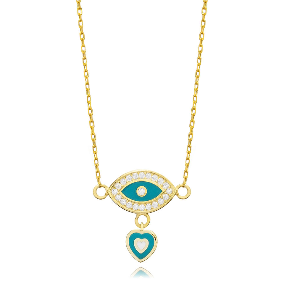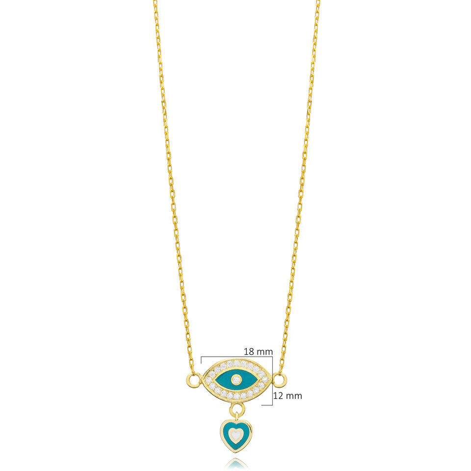 สร้อยคอดีไซน์เสน่ห์เคลือบรูปหัวใจและตาสีฟ้าครามทำด้วยมือเครื่องประดับเงินสเตอร์ลิงแบบ925