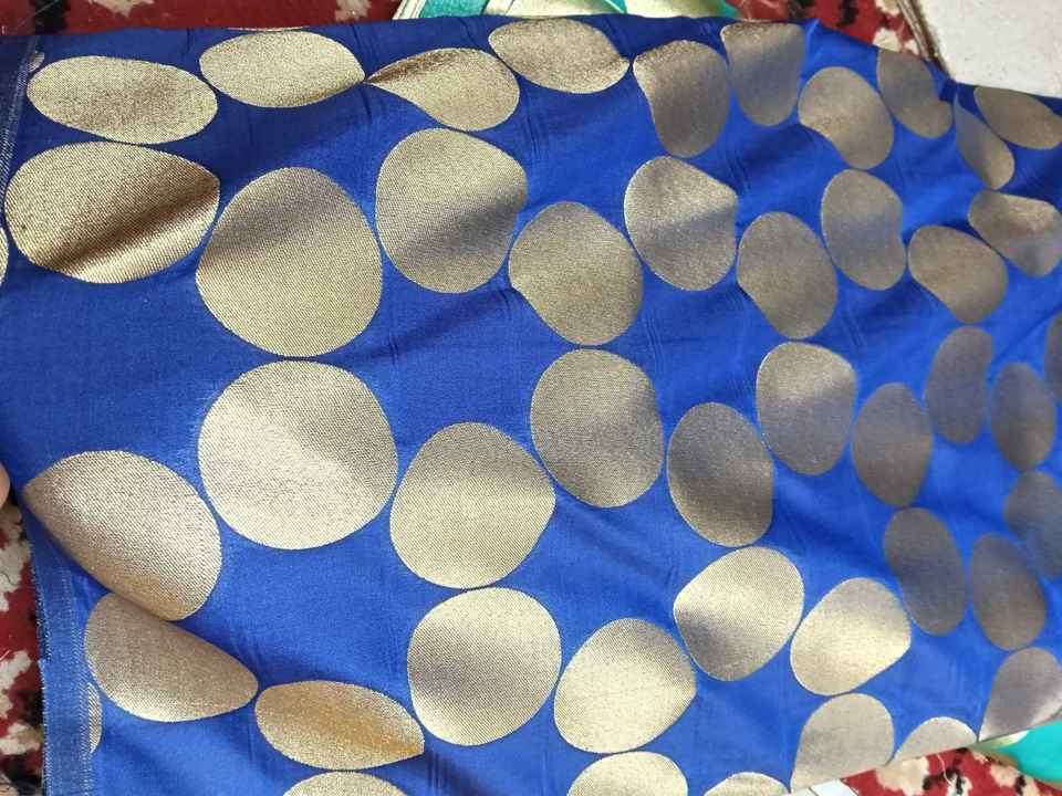 ผ้าสีเทอร์ควอยซ์ลายจุดสีทองสำหรับเสื้อผ้า ชุดเดรส งานฝีมือ การเย็บปักถักร้อย ของตกแต่งบ้าน และสิ่งทอสำหรับการออกแบบแฟชั่น