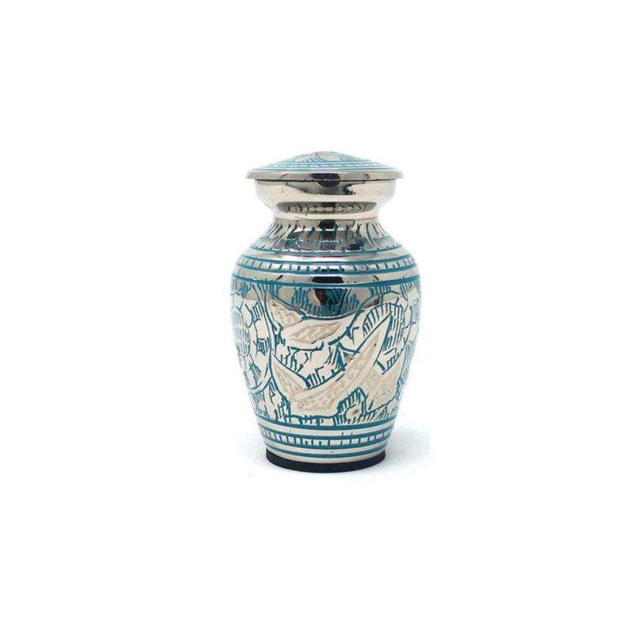 โกศเคลือบสีขาวสำหรับใส่เถ้ากระดูกรูปโกศขนาดเล็กลายดอกไม้เทอร์ควอยส์กล่องบรรจุโกศโลหะทำด้วยมือ