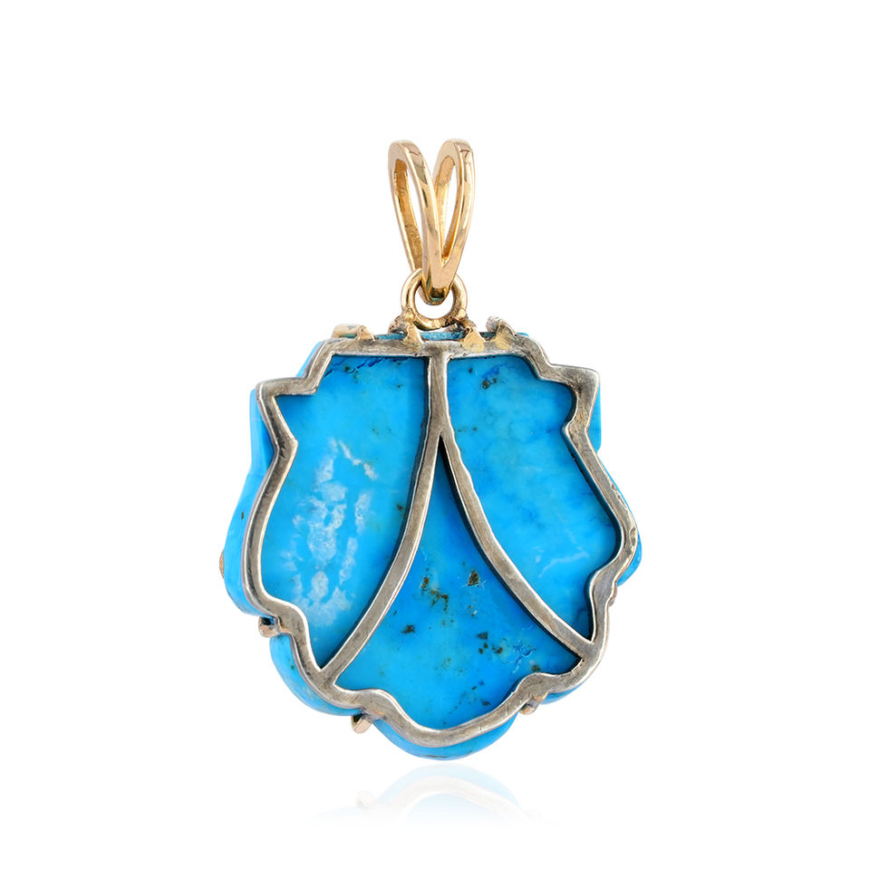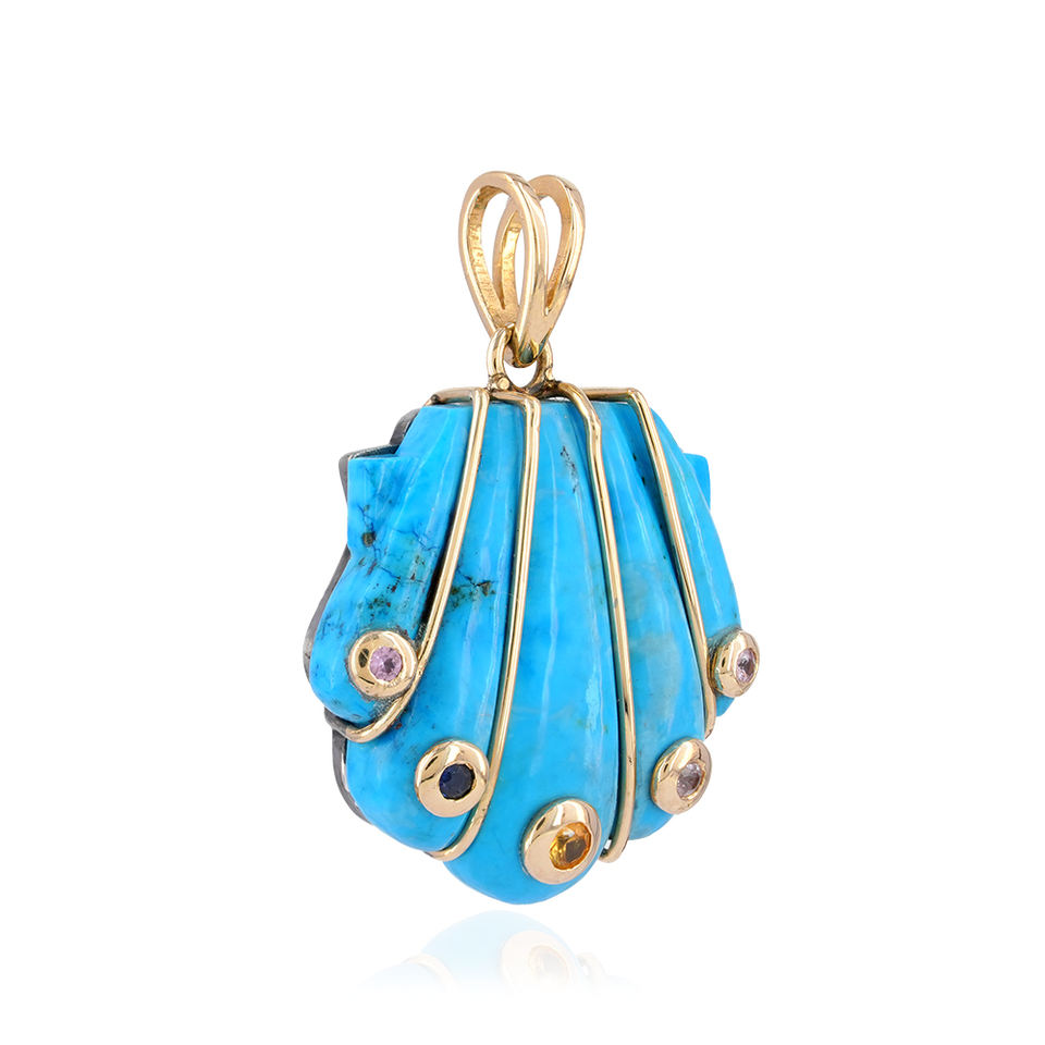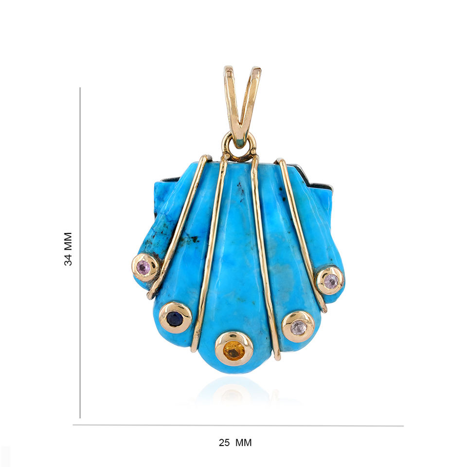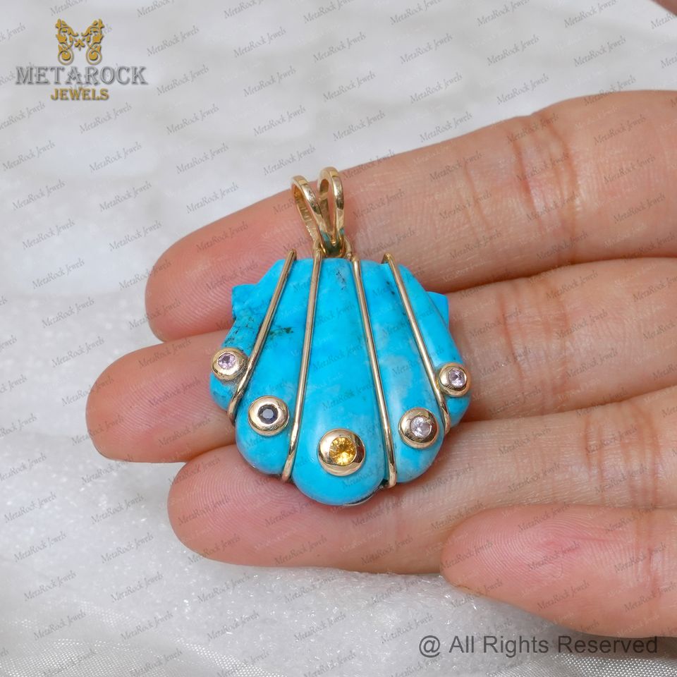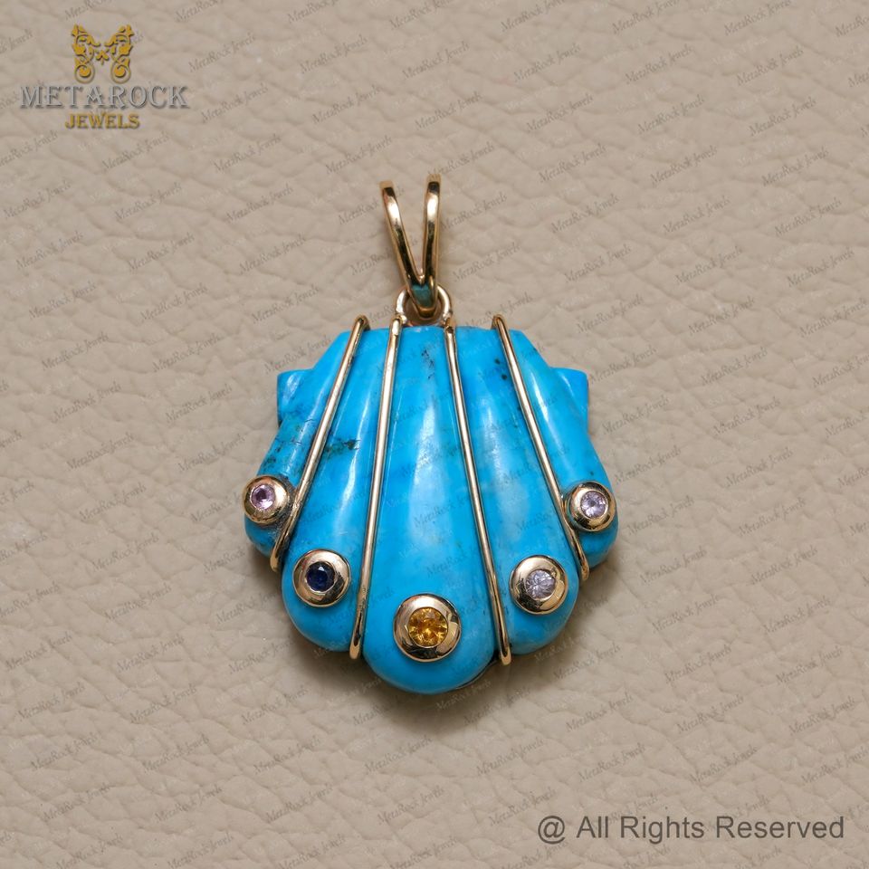 Turquoise Gemstone 14k Yellow Gold, 925 Silver Shell Pendant Multi Sapphire Fine Jewelry Wholesale