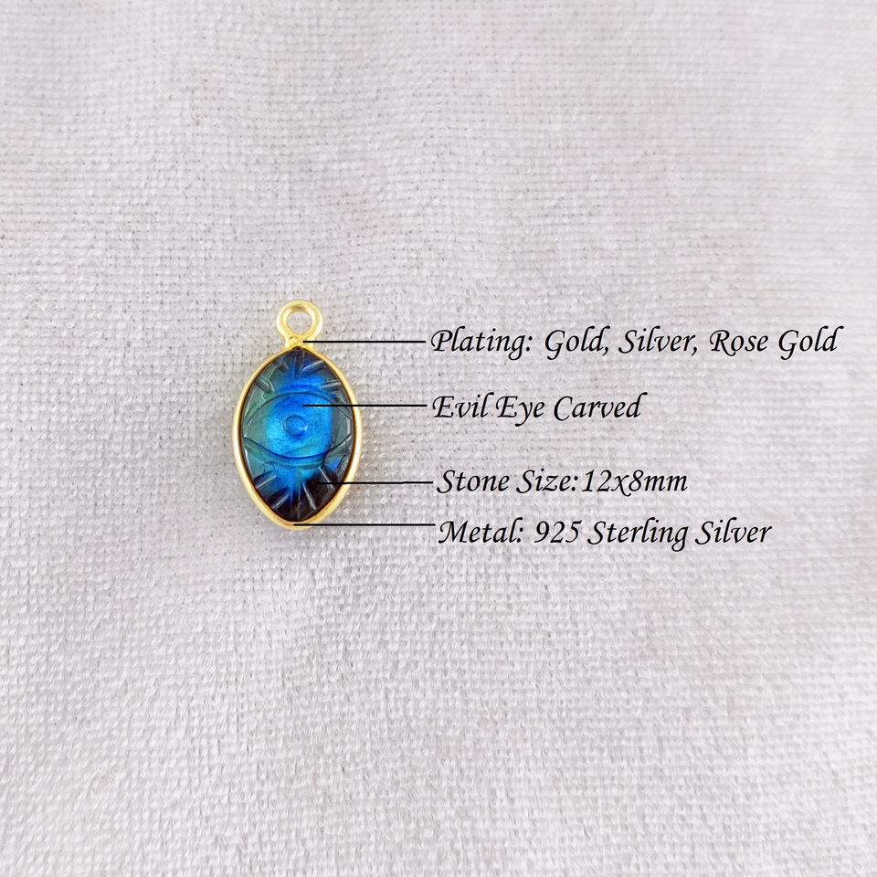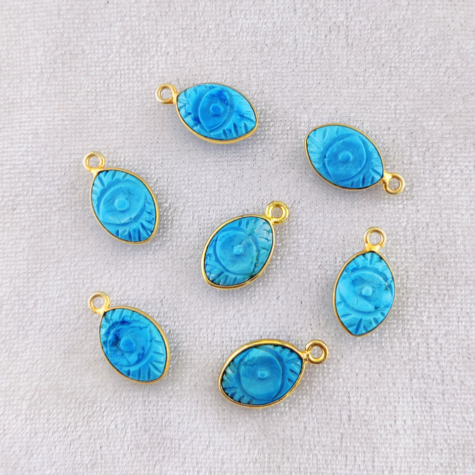 จี้พลอยเทอร์ควอยซ์พร้อมจี้เพชรแกะสลักตาชั่วร้าย925เงินสเตอร์ลิงสีทองเวอร์เมลเรือนเครื่องประดับแกะสลัก