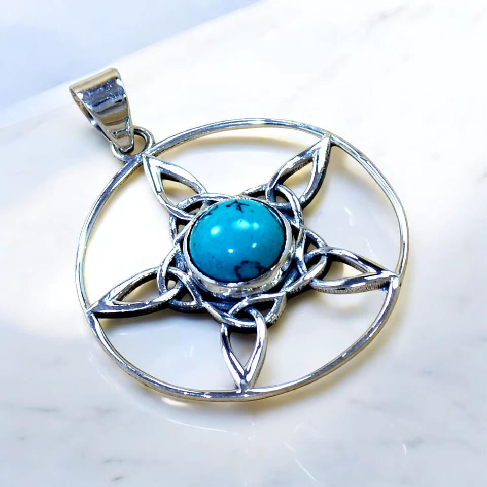 จี้พลอยเทอร์ควอยส์925จี้เงินแท้ทำมือเครื่องประดับชั้นดีจี้เงินขายส่งราคา