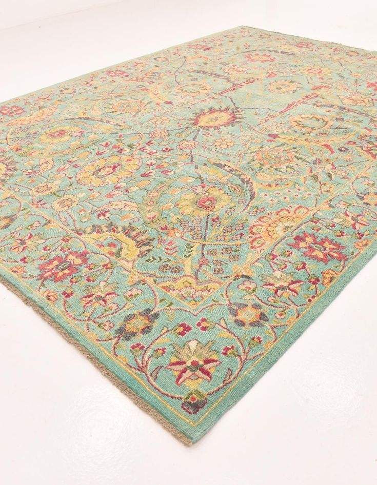 พรมปูพื้นลายอูชักสีเขียวขุ่น ทำด้วยมือจากขนสัตว์/ไหม เป็นมิตรกับสิ่งแวดล้อม พร้อมแผ่นรองกันลื่นจากปอกระเจา ดีไซน์หรูหรา