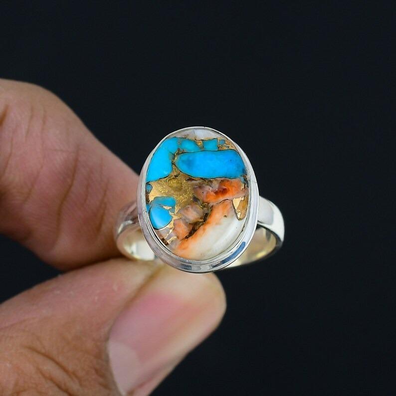 แหวนสปินเนอร์พลอยธรรมชาติทำด้วยมือเทอร์ควอยส์925เครื่องประดับเงินแท้แหวนสัญญาของขวัญแต่งงานเครื่องประดับเงินอย่างดี