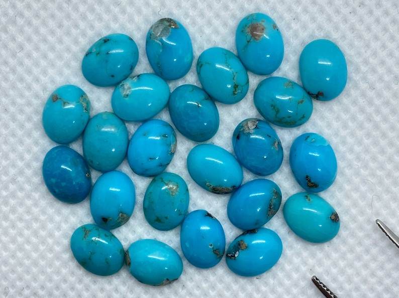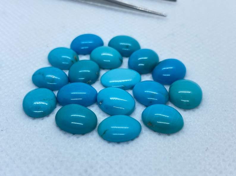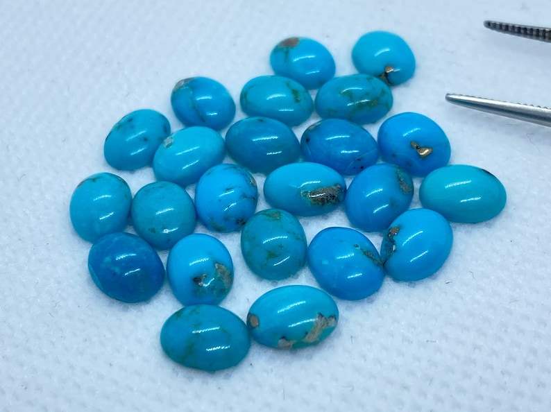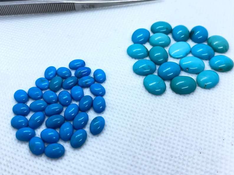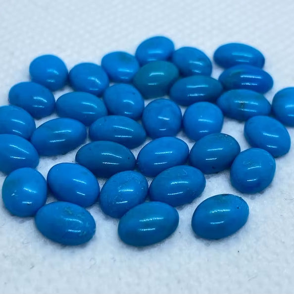 พลอยเทอร์ควอยซ์รูปไข่ทรงคาโบชอง ร้อนอบ ขนาดต่างๆ คละไซส์ ปรับขนาดแล้ว สำหรับทำเครื่องประดับ มีสีสันเปลี่ยนแปลง