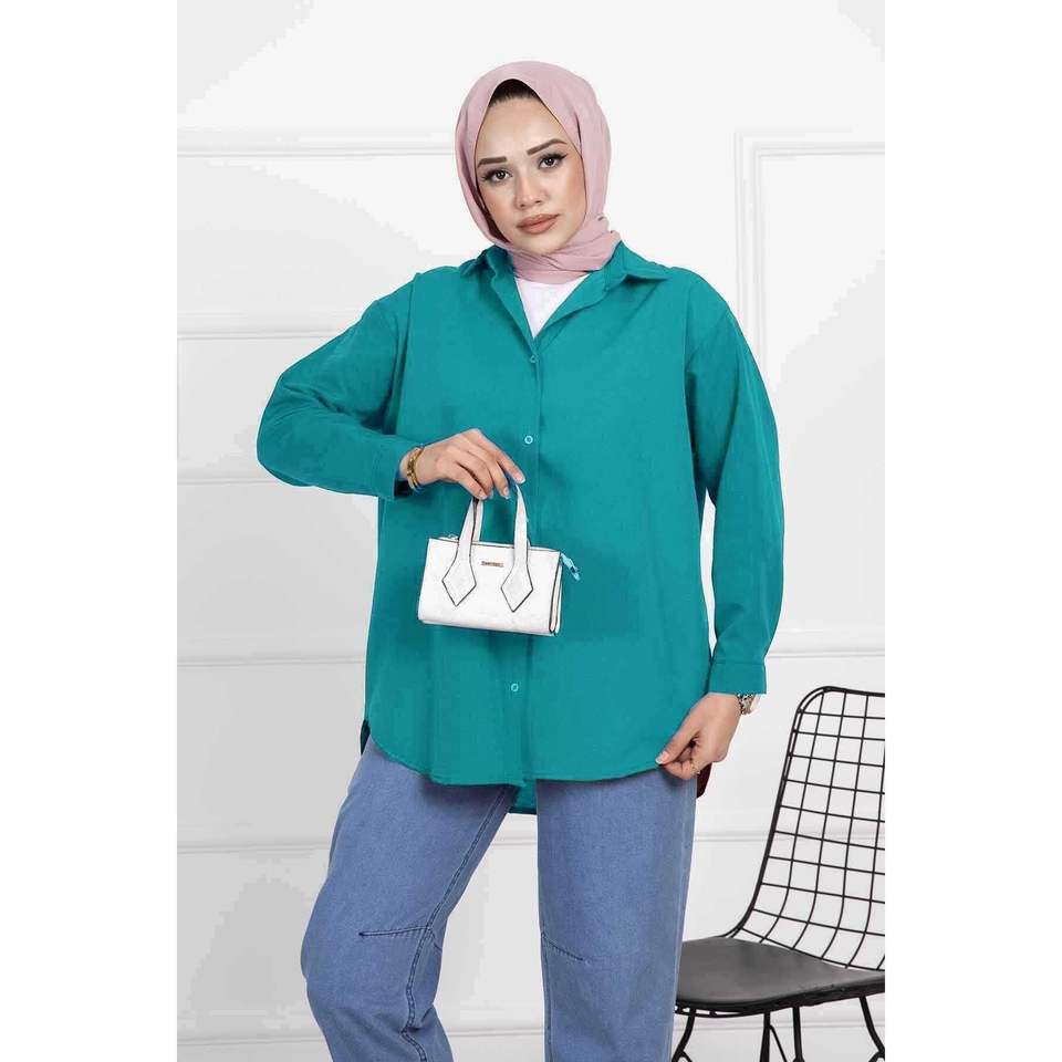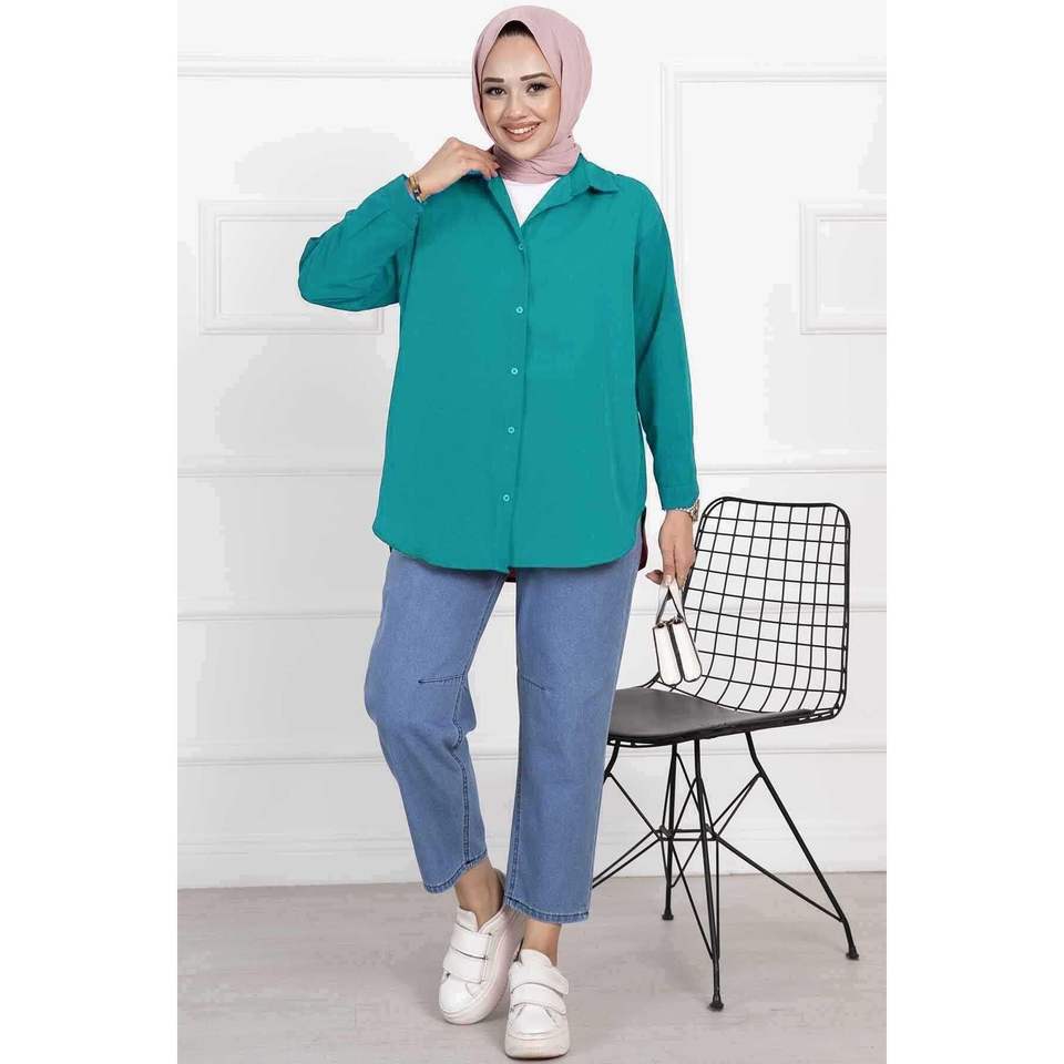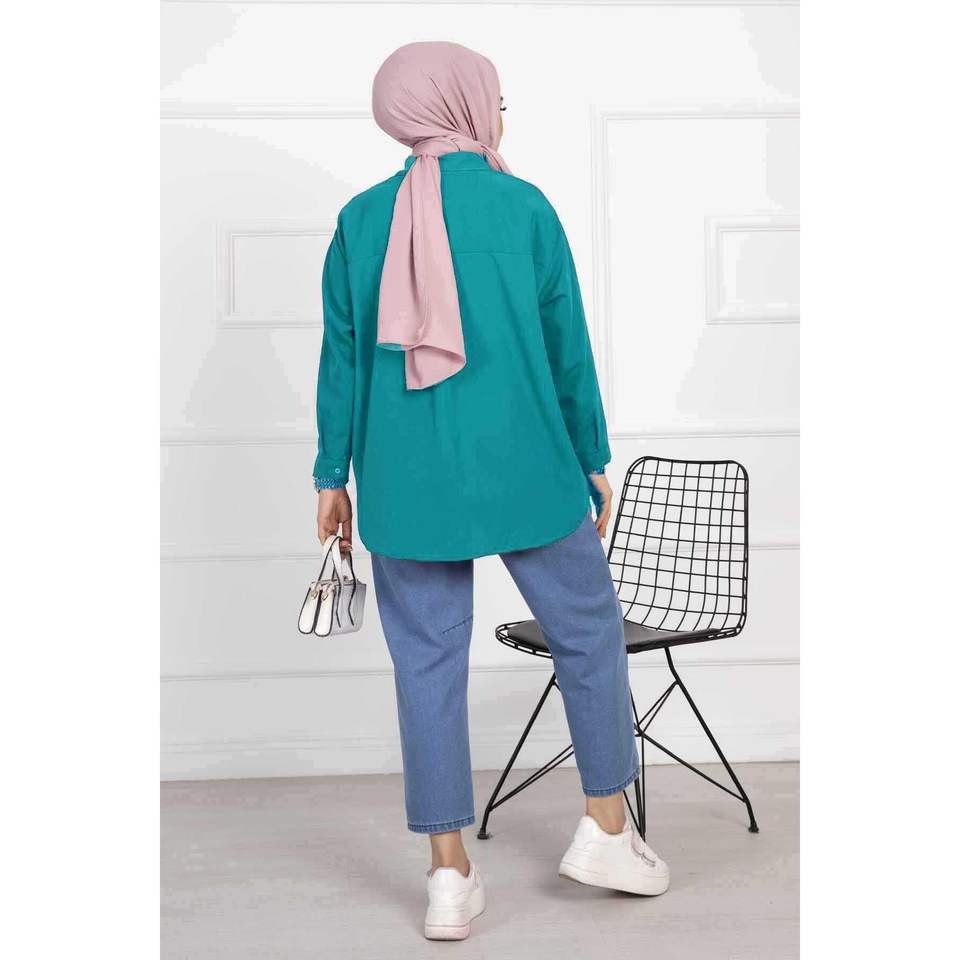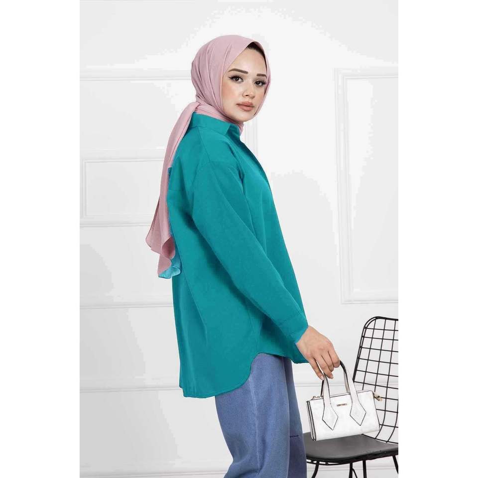 เสื้อฮิญาบสีเขียวขุ่นใส่สบายพอดีตัวเสื้อสุภาพ
