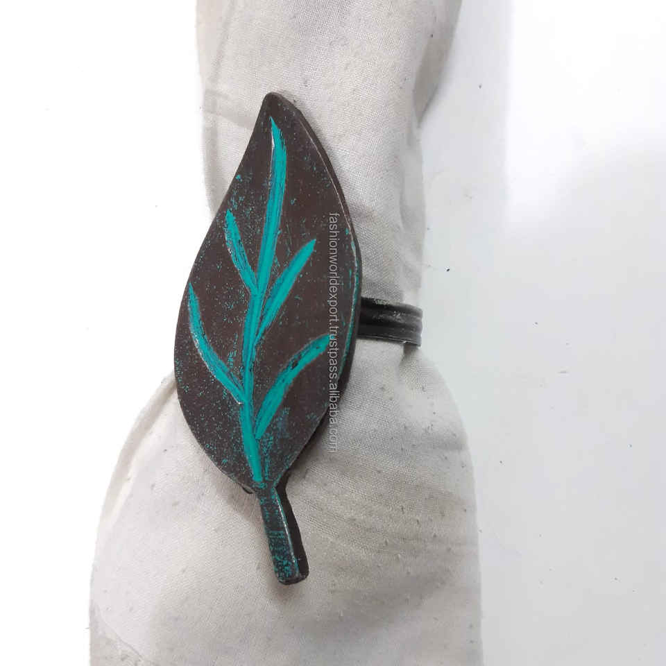 แหวนรัดผ้าเช็ดปากอะลูมิเนียมรูปใบไม้สไตล์วินเทจสีเทอร์ควอยซ์ เป็นมิตรกับสิ่งแวดล้อม สำหรับงานแต่งงาน งานปาร์ตี้ และคริสต์มาส