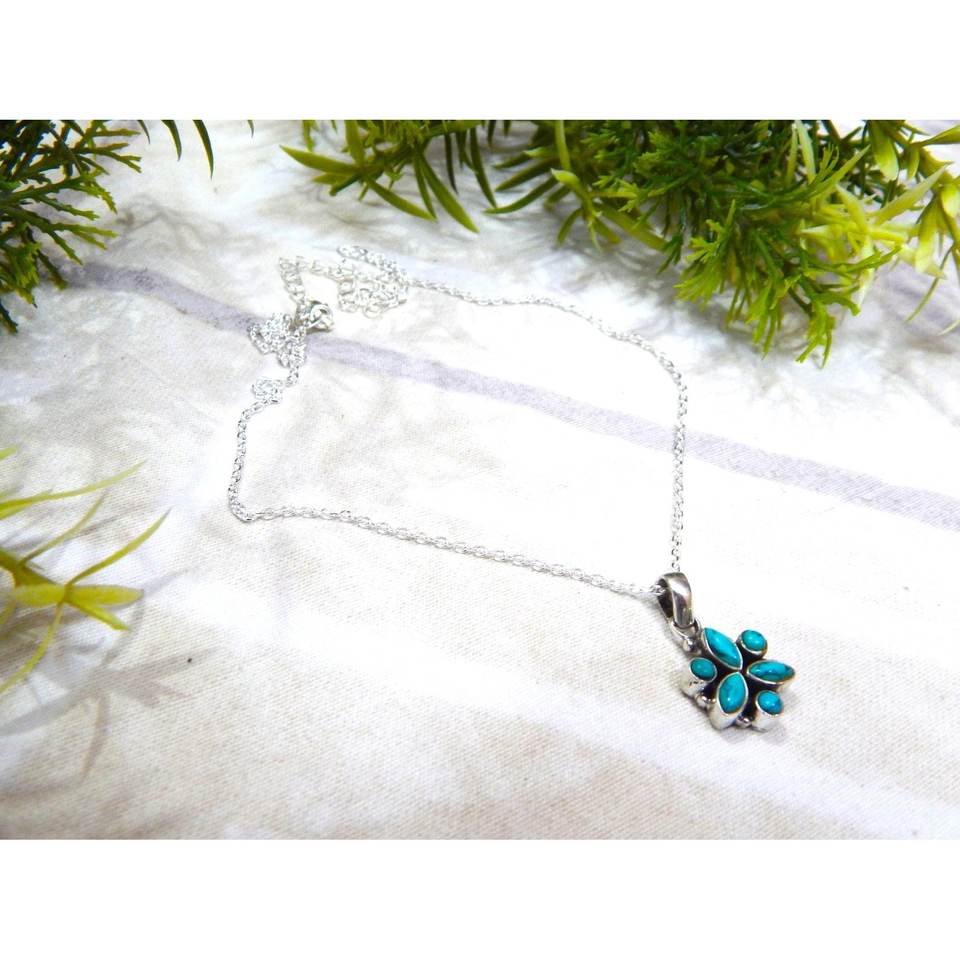 สร้อยคอเทอร์ควอยซ์925เงินสเตอร์ลิงพร้อมเครื่องประดับทองคำขาวสำหรับผู้หญิงของขวัญที่สมบูรณ์แบบสำหรับ Her-NL0118-GS