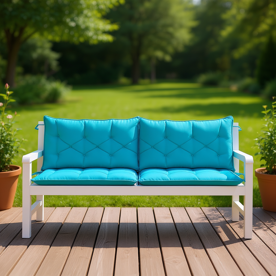 ชุดเบาะรองนั่งสำหรับสวนกลางแจ้งสีเทอร์ควอยซ์ โพลีเอสเตอร์ 100% กันน้ำ ถอดซักได้ รูปทรงสี่เหลี่ยมผืนผ้า ใช้ได้ทุกฤดู