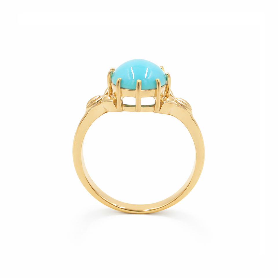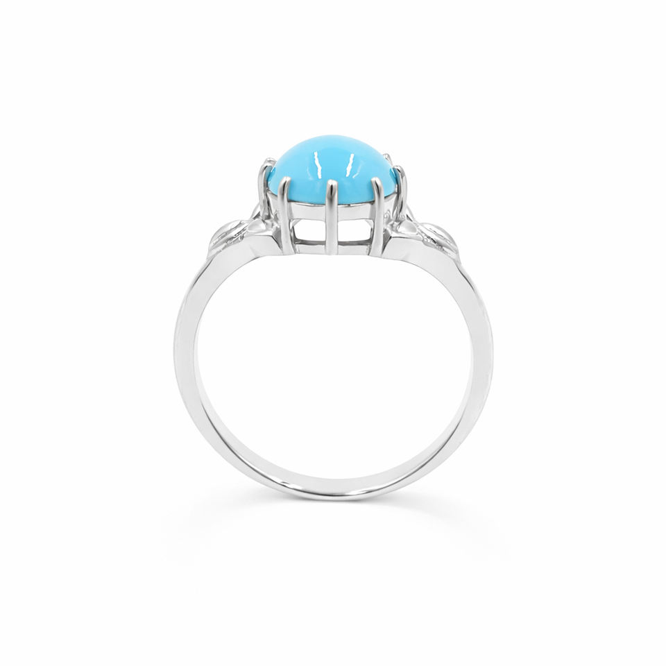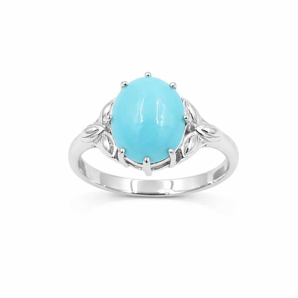 แหวนเงินแท้ 925 ชุบทองคำขาว ประดับพลอยรูปไข่สีฟ้าคราม ดีไซน์ใบไม้สลักลาย