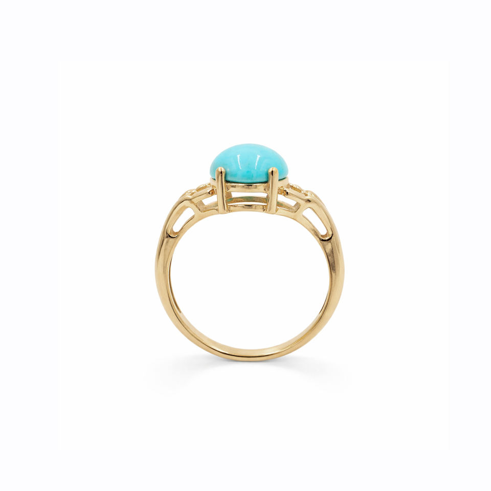 แหวนเงินแท้ 925 ชุบทองคำขาว ประดับพลอยเทอร์ควอยซ์ทรงรีแบบคาโบชอง ลายจุดสามเหลี่ยม ดีไซน์เนอร์แหวนพลอย