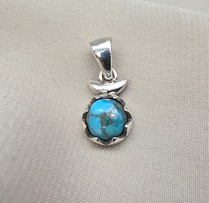 จี้เทอร์ควอยซ์เงินแท้ 925 เครื่องประดับพลอยสีฟ้าธรรมชาติของขวัญหรูหราสำหรับผู้หญิงการออกแบบทำด้วยมือที่ไม่ซ้ำใคร