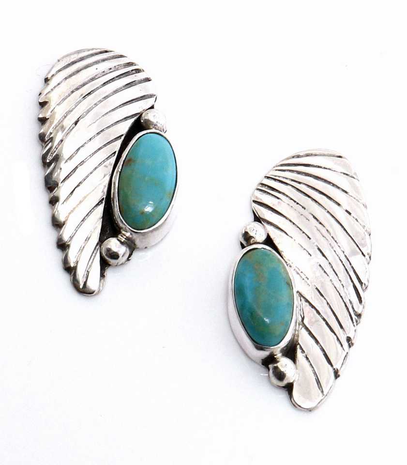ต่างหูเงินและใบสีเทอร์ควอยซ์พร้อมกรอบสำหรับงานปาร์ตี้วันครบรอบและของขวัญ