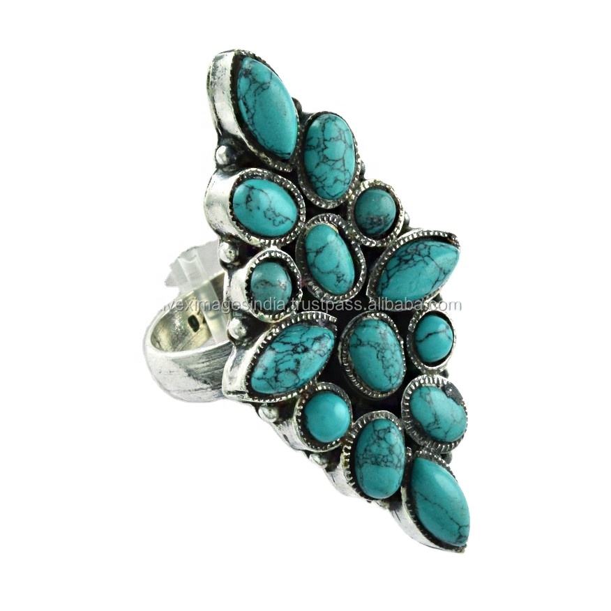 แหวนเงินสเตอร์ลิง925หินเทอร์ควอยซ์ดีไซน์สวยแหวนเงินเทอร์ควอยซ์สำหรับ925เครื่องประดับอินเดีย