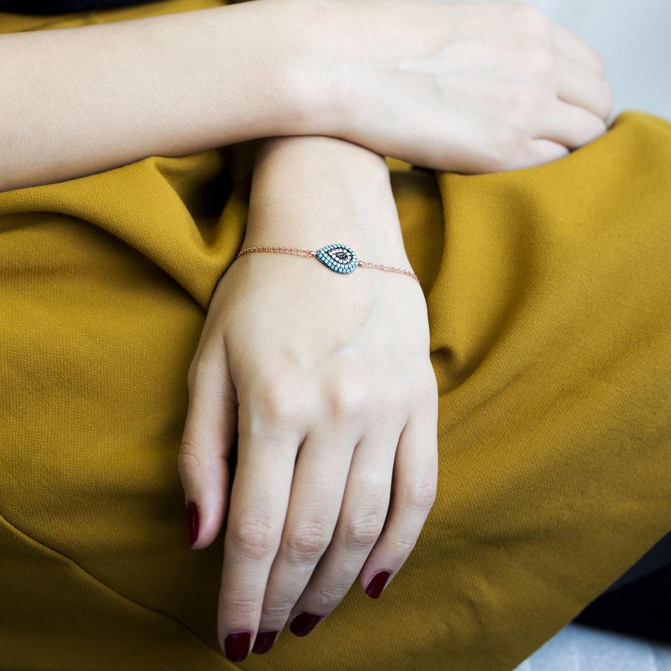 สร้อยข้อมือเทอร์ควอยส์พร้อมตาแบบเรียบง่ายมีสไตล์เครื่องประดับชั้นดีทำจากเงินสเตอร์ลิง925ขายส่ง