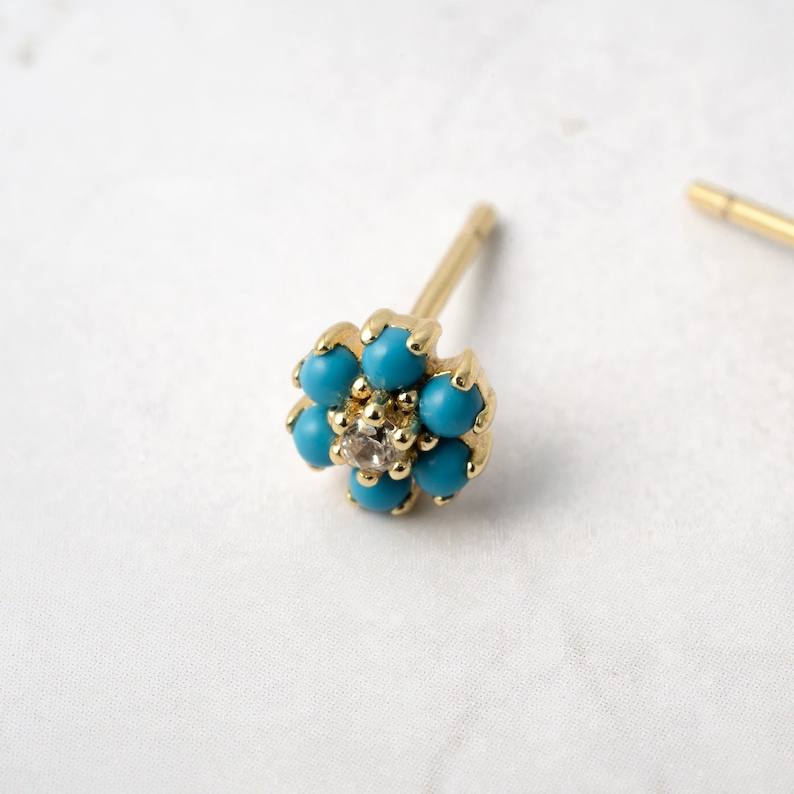 ต่างหูสตั๊ดสีเทอร์ควอยส์925เงินสเตอร์ลิง14K ชุบทองแบบมินิมอลของขวัญสำหรับเครื่องประดับเทอร์ควอยซ์แสนสวยของเธอ