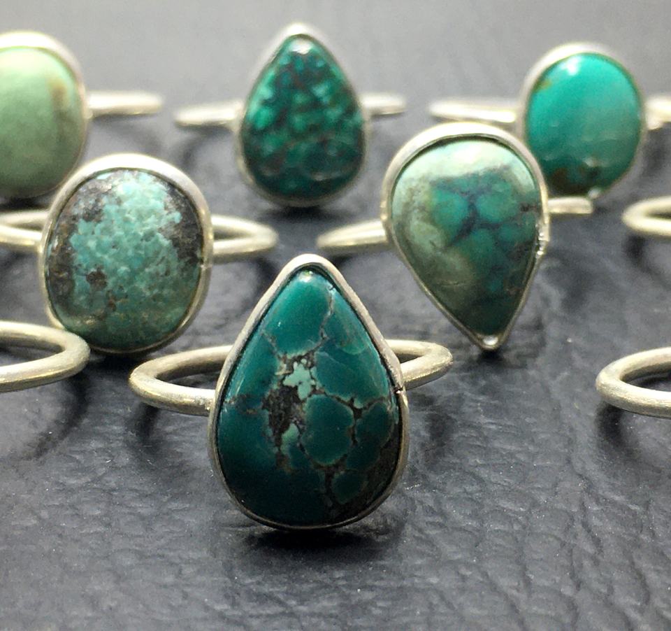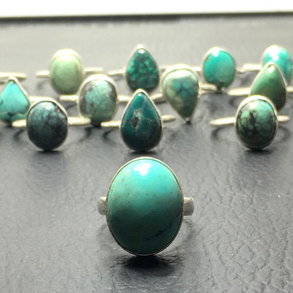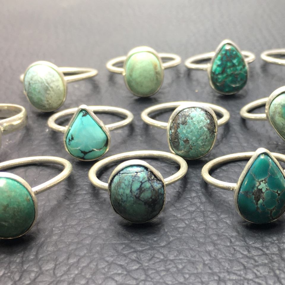แหวนเครื่องประดับเงินพลอยเทอร์ควอยส์ทิเบตคุณภาพดีเยี่ยมสำหรับงานหมั้นงานครบรอบแต่งงานหรือของขวัญ
