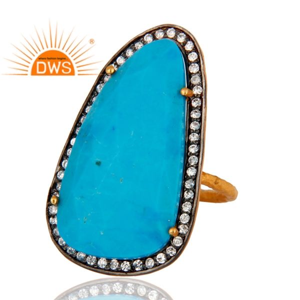 แหวนพลอยเพทายเทอร์ควอยซ์ดีไซน์ใหม่แหวนเงินชุบทอง925สีเหลือง22K เครื่องประดับคอลเลกชันอันงดงาม