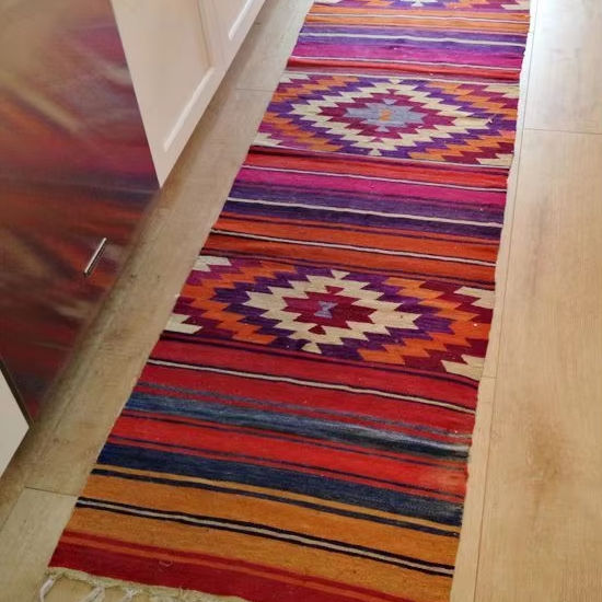 พรมปูพื้นลายเรขาคณิตสำหรับตกแต่งบ้านสีเทอร์ควอยซ์และสีแดง