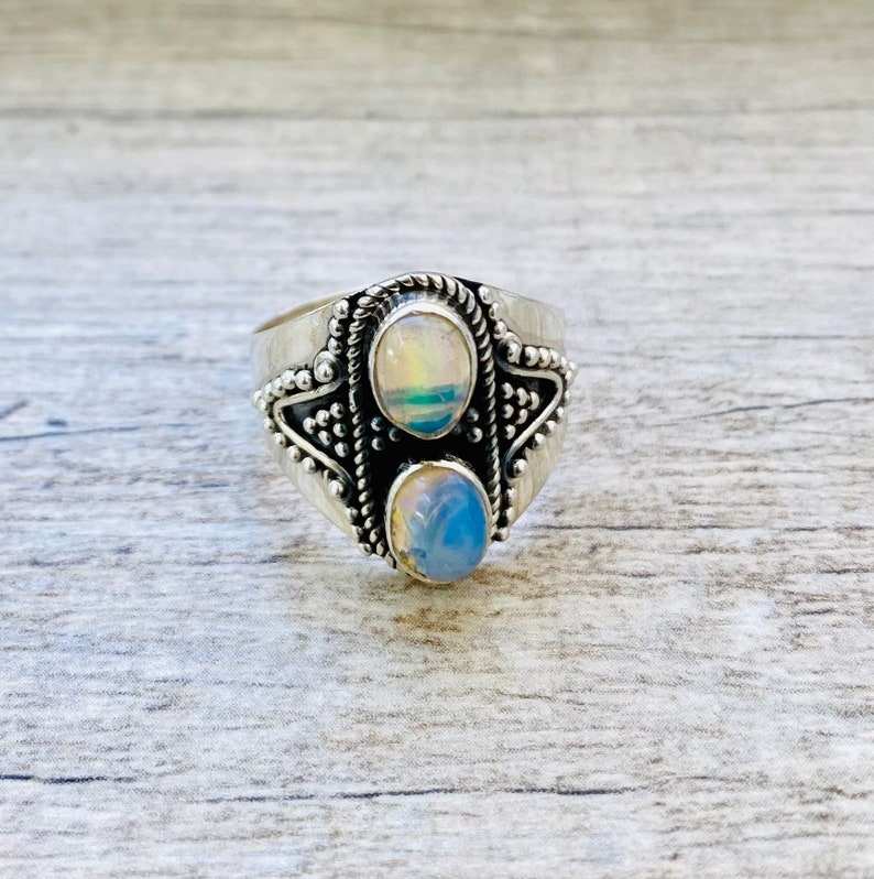 แหวนรูปโค้งมนสีฟ้าครามและสีเงินพลอยสีขาวธรรมชาติเป็นของขวัญครบรอบการอบด้วยความร้อนสำหรับผู้หญิงและเด็กผู้หญิง