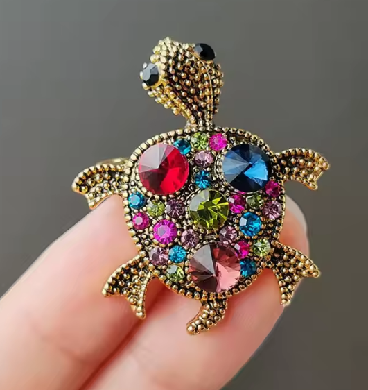 Turtle Alloy Crystal Rhinestone Brooch for Women Party Wedding Coat Accessories